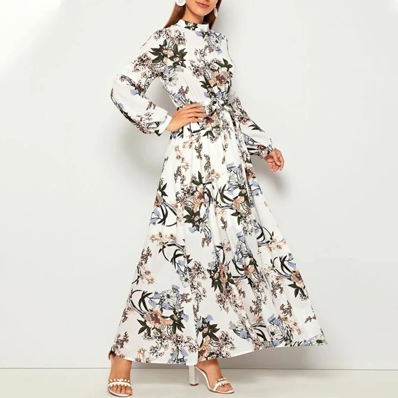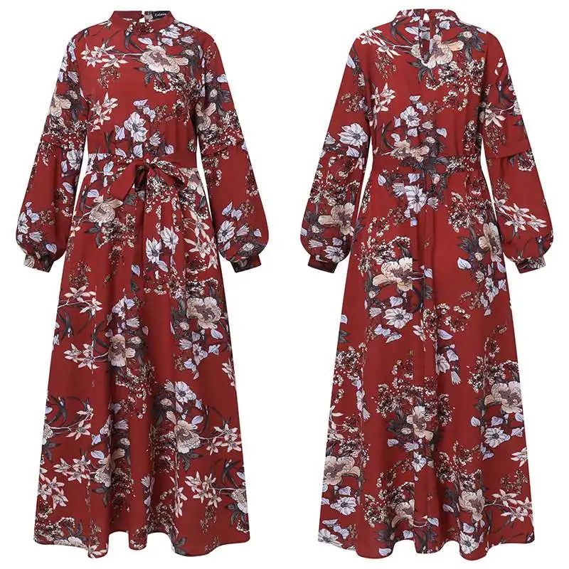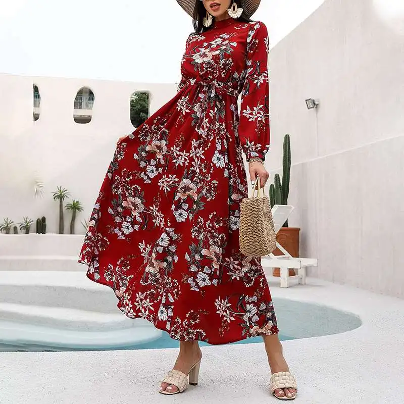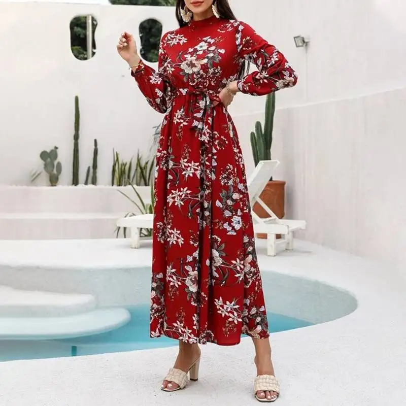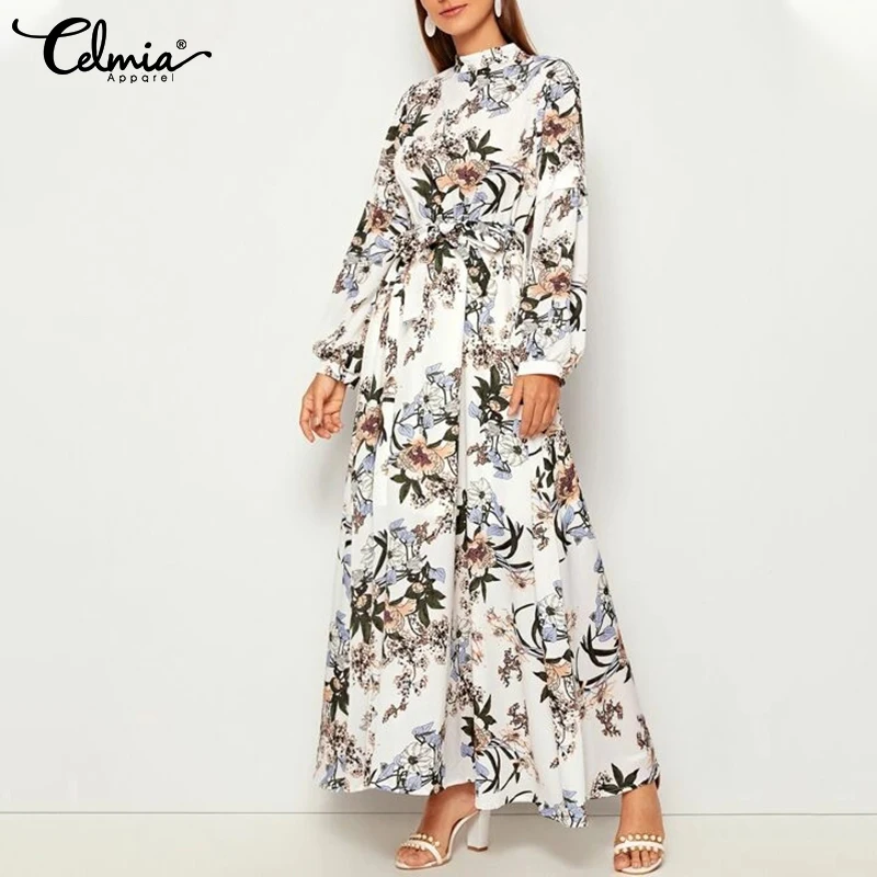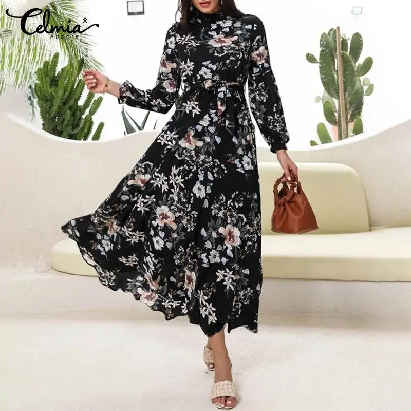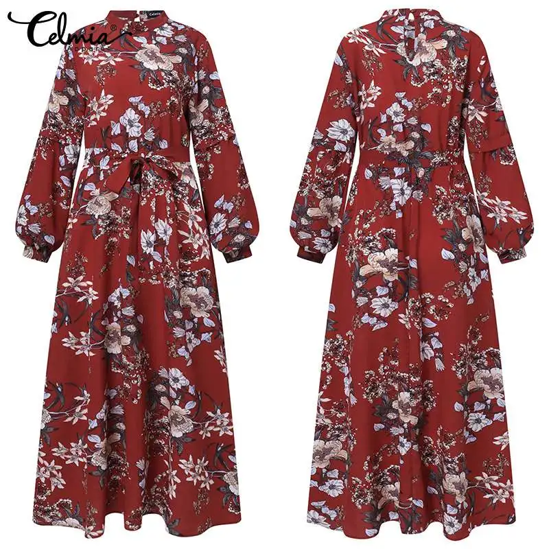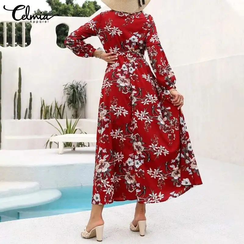Женское богемное платье макси Celmia с цветочным принтом, Осеннее Бандажное платье с длинным рукавом и высокой талией, праздничное вечернее платье с поясом, уличная одежда 2021