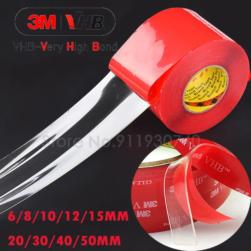 Двухсторонняя клейкая лента 3 м 10121520304050 мм, акриловая прозрачная наклейка без следов, Светодиодная лента, фиксированная автомобильная лента для планшета, ванной комнаты