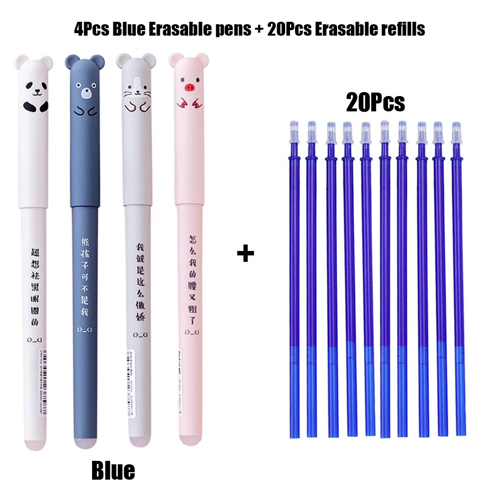 4 + 20 шт./набор, стираемая гелевая ручка с животными, пандой, 0,5 мм, стираемая ручка, стержни, моющаяся ручка, школьные канцелярские принадлежности