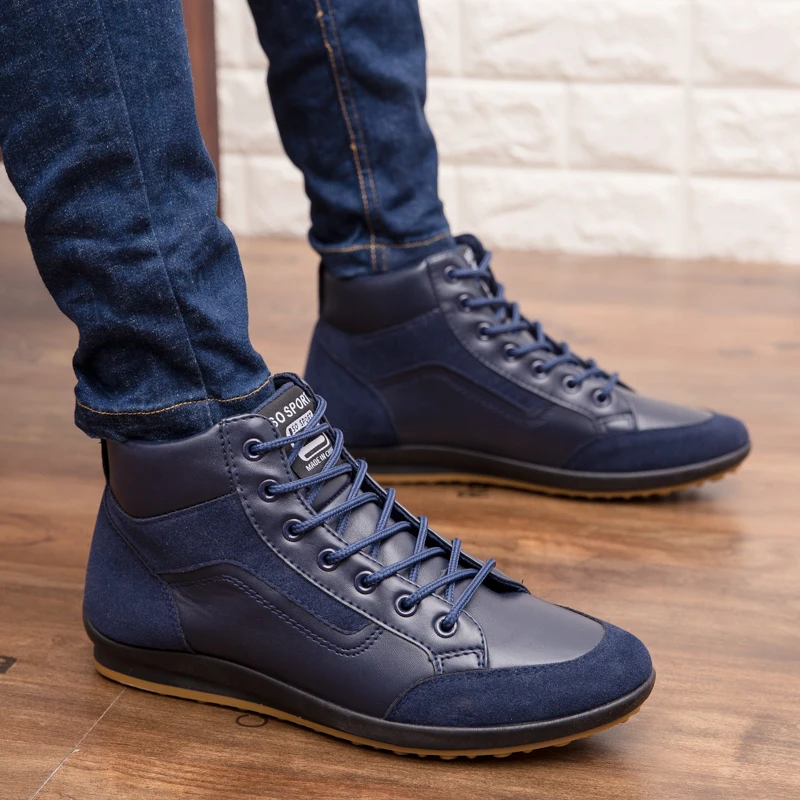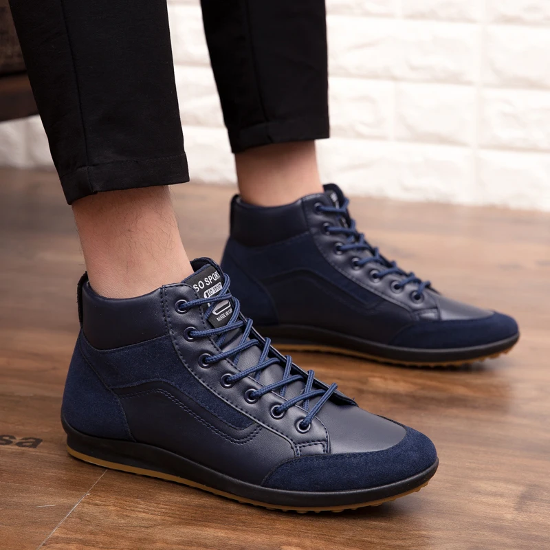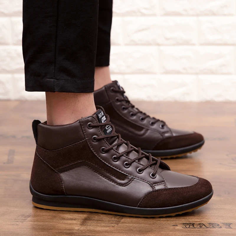Модные мужские ботинки из искусственной кожи, мужская повседневная мягкая обувь на плоской подошве, легкие прогулочные ботинки с высоким верхом, размеры 39-46
