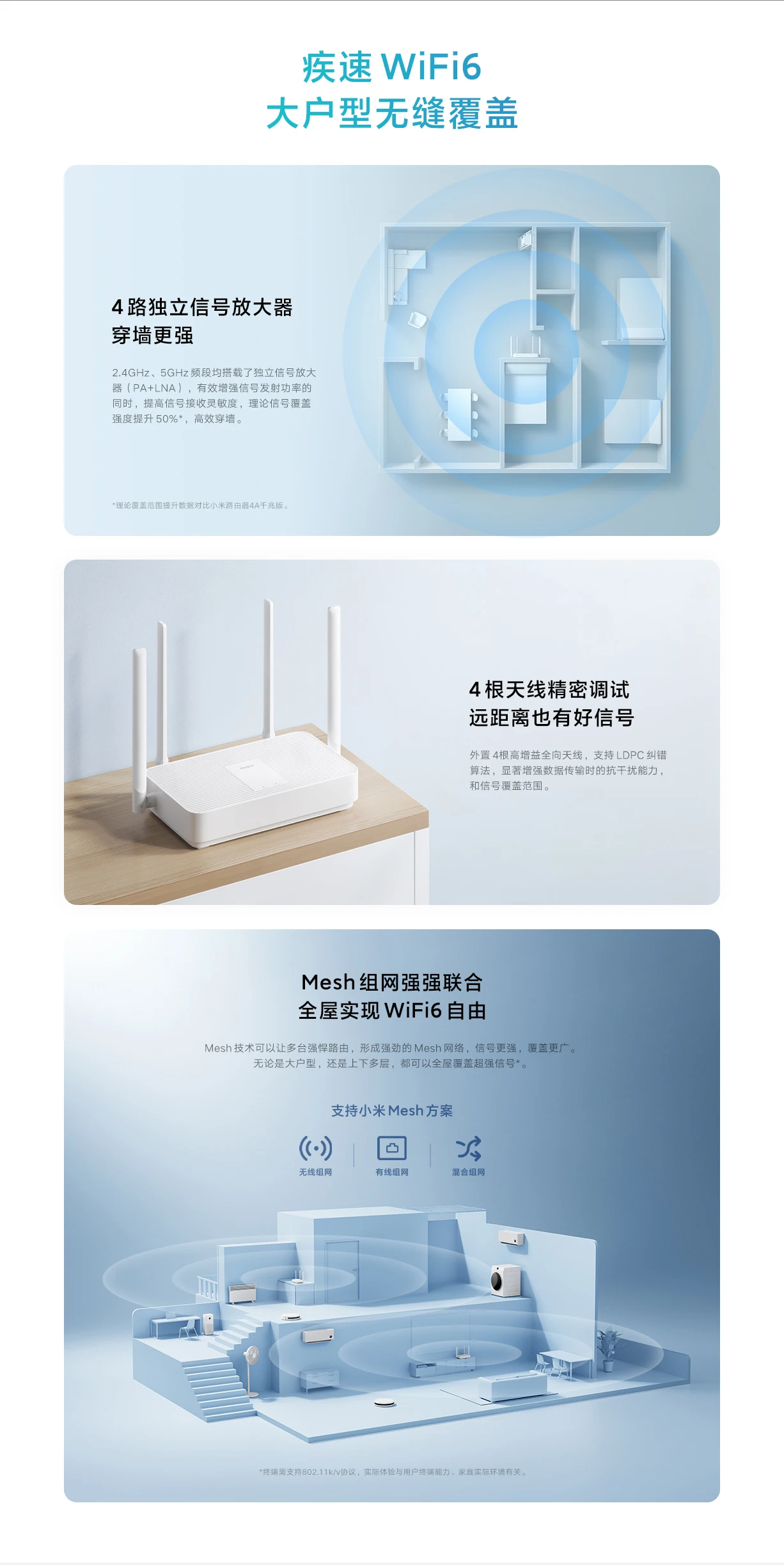 Wi-Fi-роутер Xiaomi Redmi AX3000, 6 ядер, 256 ГГц, ГГц