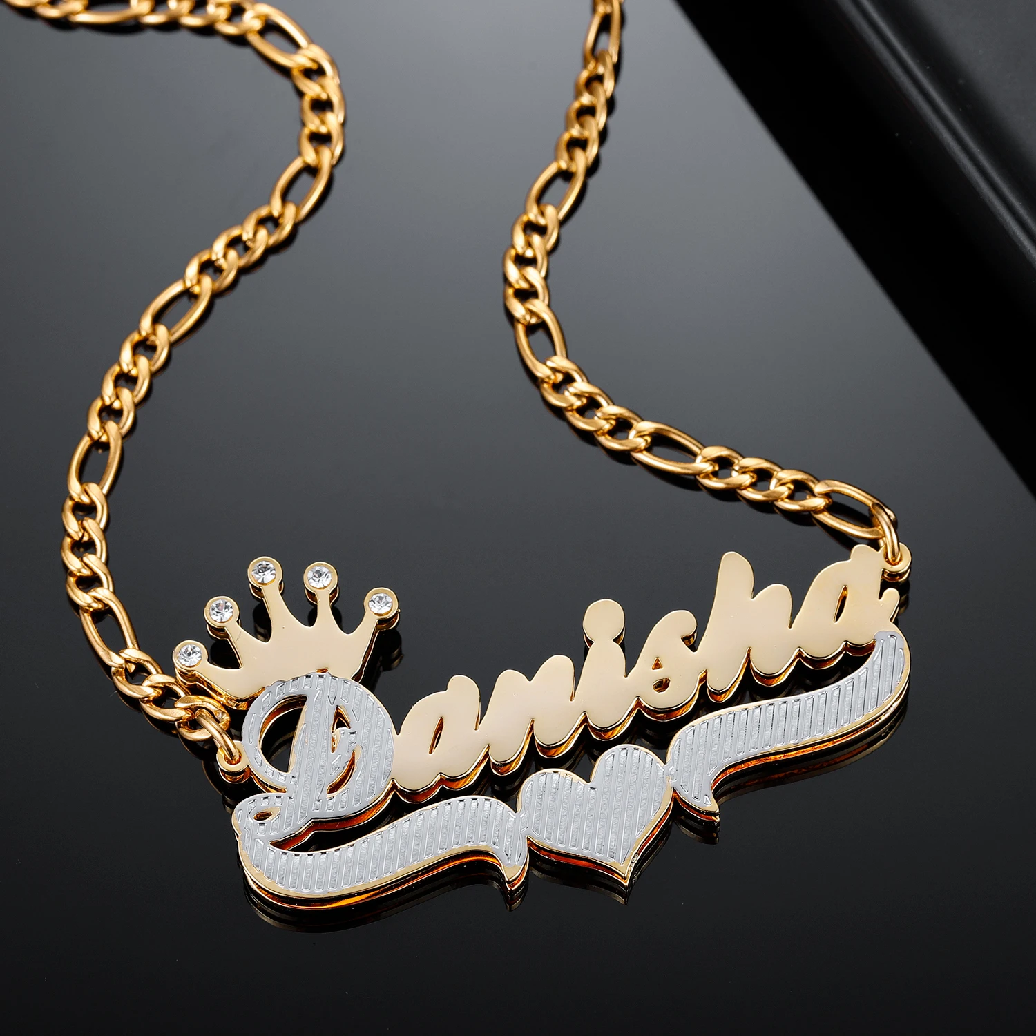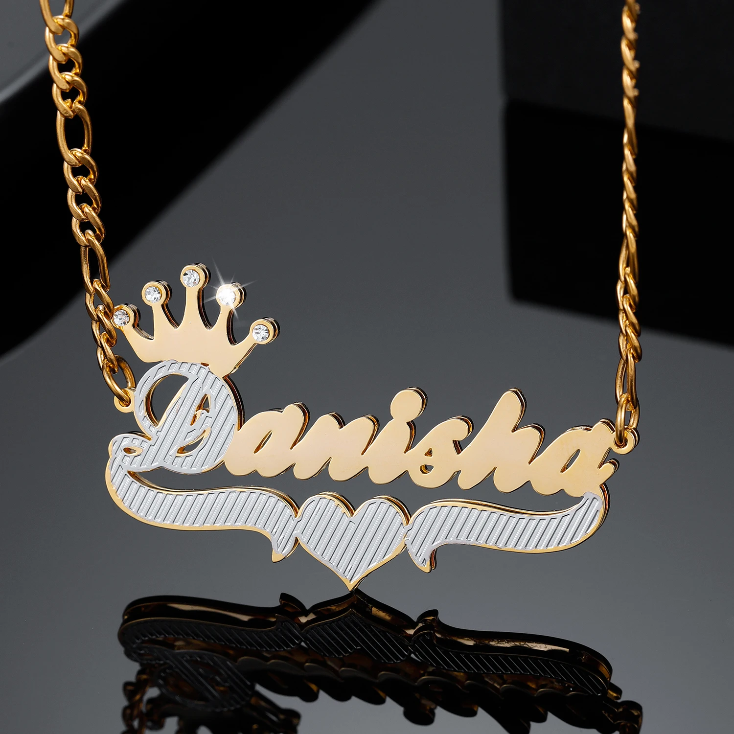 Двухслойное двухцветное ожерелье с короной и сердцем, персонализированное ожерелье с именем из 18-каратного золота с именной табличкой, подвеска 3D для женщин, ювелирные изделия