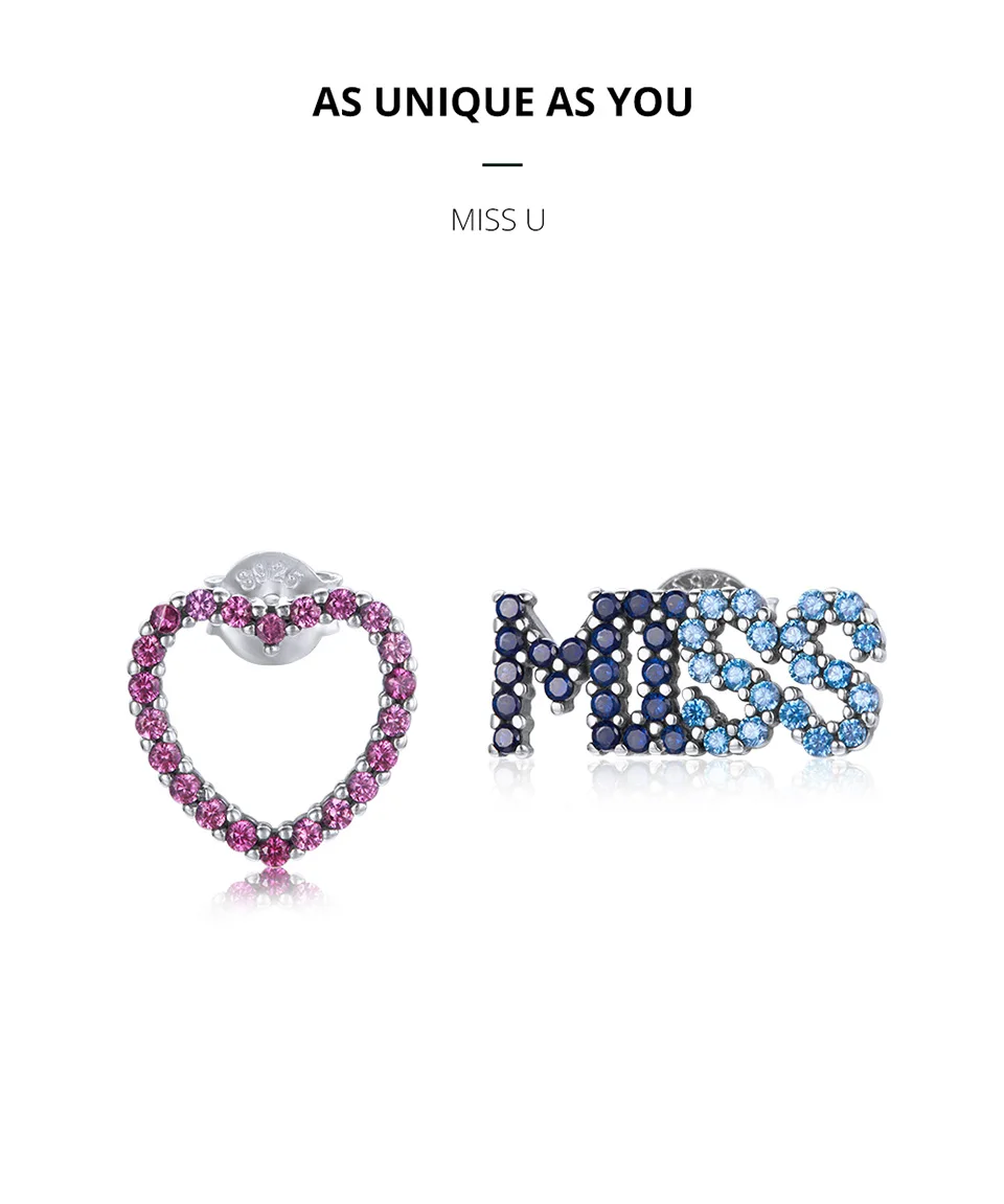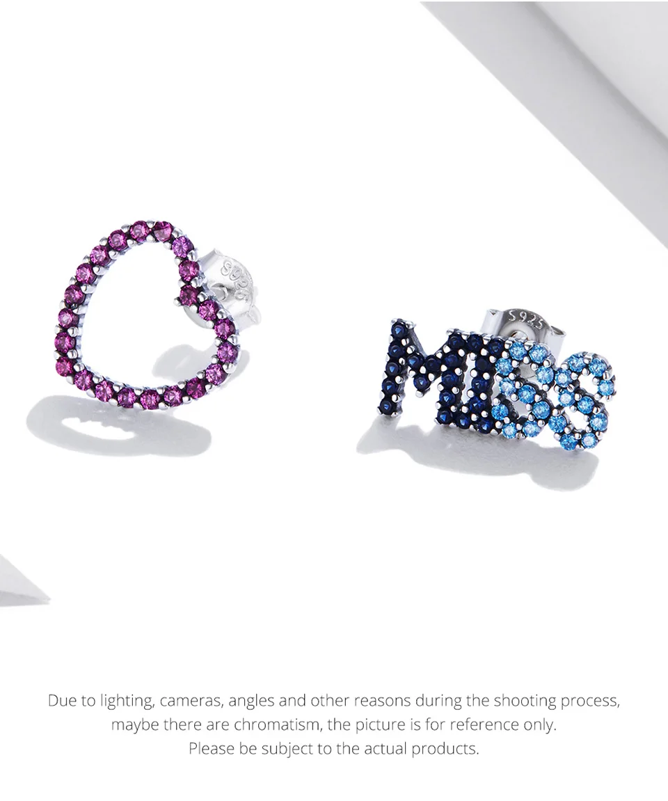 Размер любви: 1,1*1,1 смРазмер МИСС: 0,6*1,4 смВес: 1,4 гМатериал: S925 + фианит с паве + окисленное сереброОписание: «Мисс» с цветным цирконием и любовью-образной шпилькой составляют пару ассиметричные серьги, модная. Синие и розовые контрастные цвета полны жизненной силы.