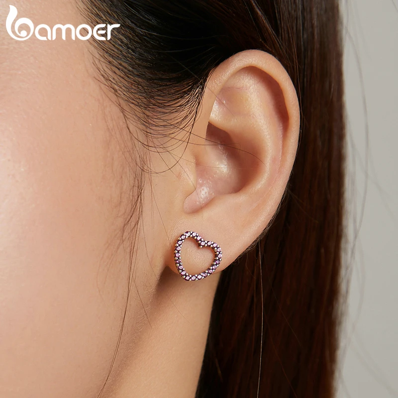 Женские серьги-гвоздики в форме сердца bamoer, серьги из натурально...