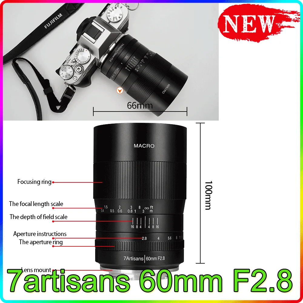 Макрообъектив 7artisans 60 мм F2.8, макрообъектив с ручной фокусиро...
