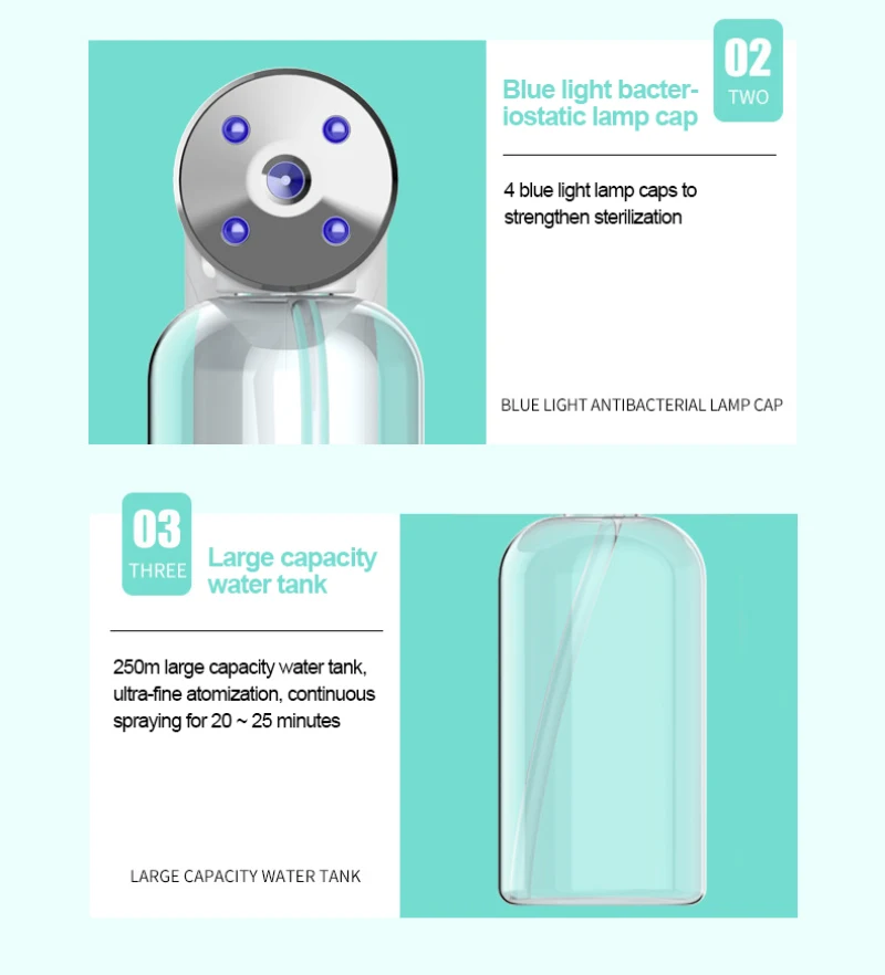 1. Высококачественный нано-распылитель, использование термостойкого материала ABS, быстрое запотевание, большое количество тумана