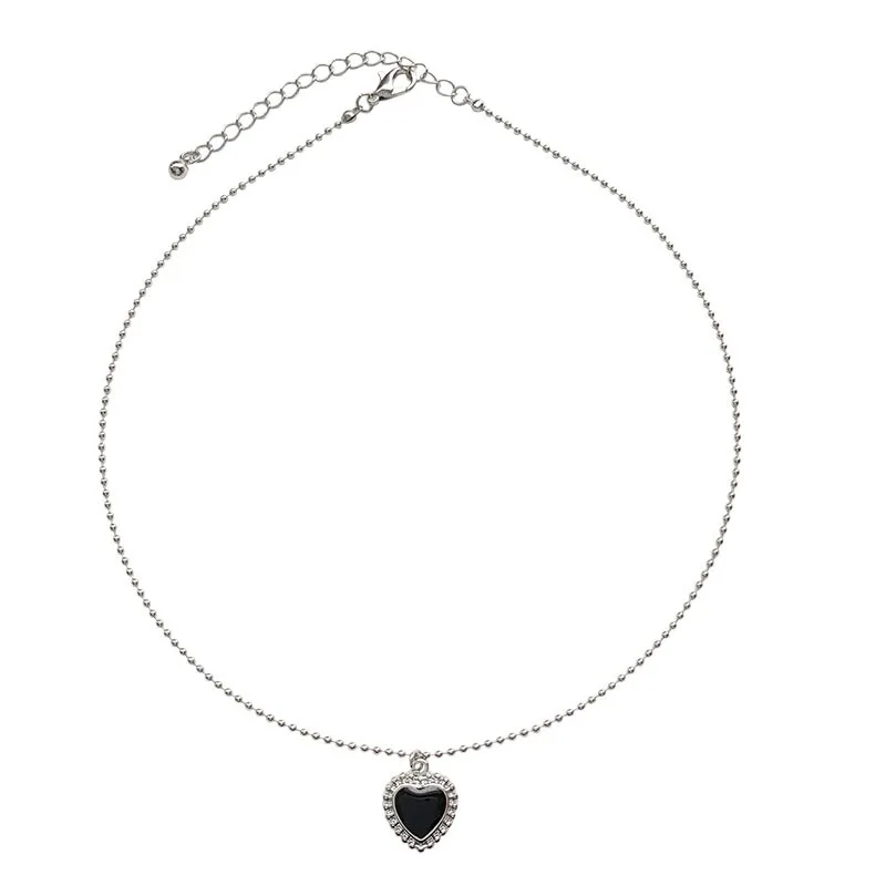 Ожерелье с черным сердцем, французская металлическая цепочка с любовью до ключиц, Корейская простая Женская Короткая подвеска, кружевной женский короткий кулон для женщин
