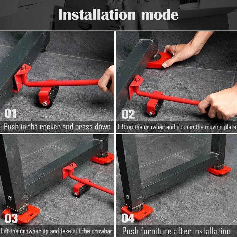 Набор инструментов для передвижения мебели, подъемник для транспортировки тяжелых вещей, движущийся 4-колесный ролик с колесной штангой, движущееся устройство, инструменты, Прямая поставка