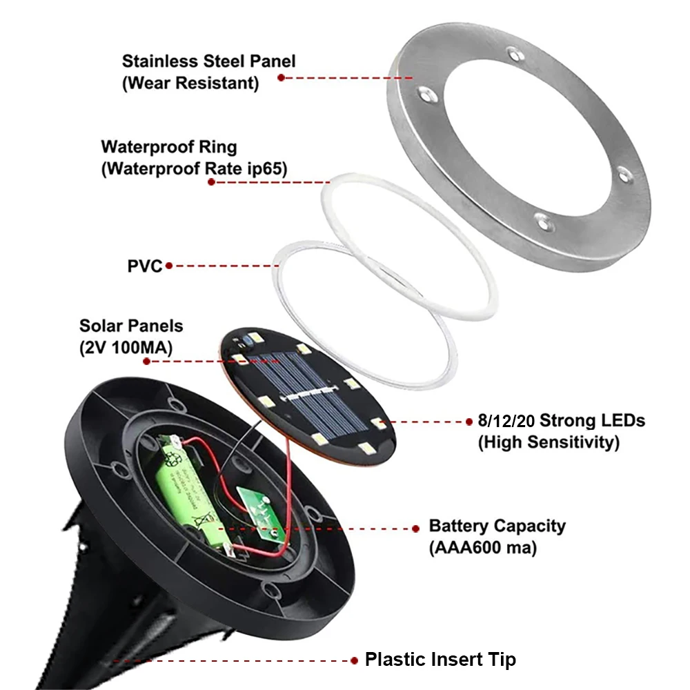 Уличный наземный светильник на солнечной батарее, водонепроницаемый садовый фонарь для дорожек с 20812 светодиодный одами для дома, двора, подъездной дорожки, лужайки, дороги