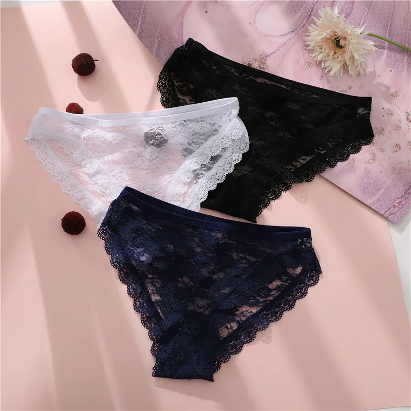 Сексуальные кружевные трусики, женские трусики 3 шт.компл., нижнее белье большого размера, сексуальные цветочные трусики с заниженной талией, трусики, женское белье