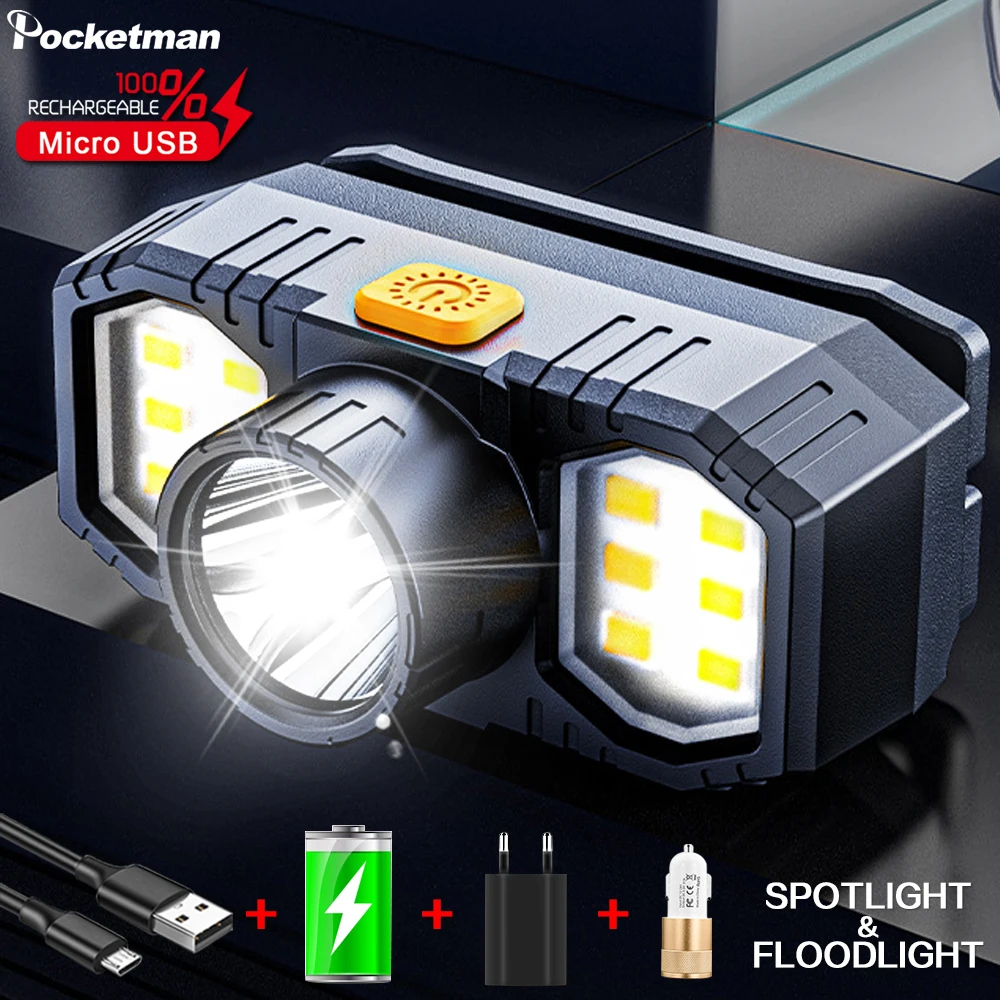 Новый портативный светодиодный налобный фонарь Q5 + COB со встроенной батареей 18650, мини-фонарик с USB-зарядкой, уличный фонарь для кемпинга