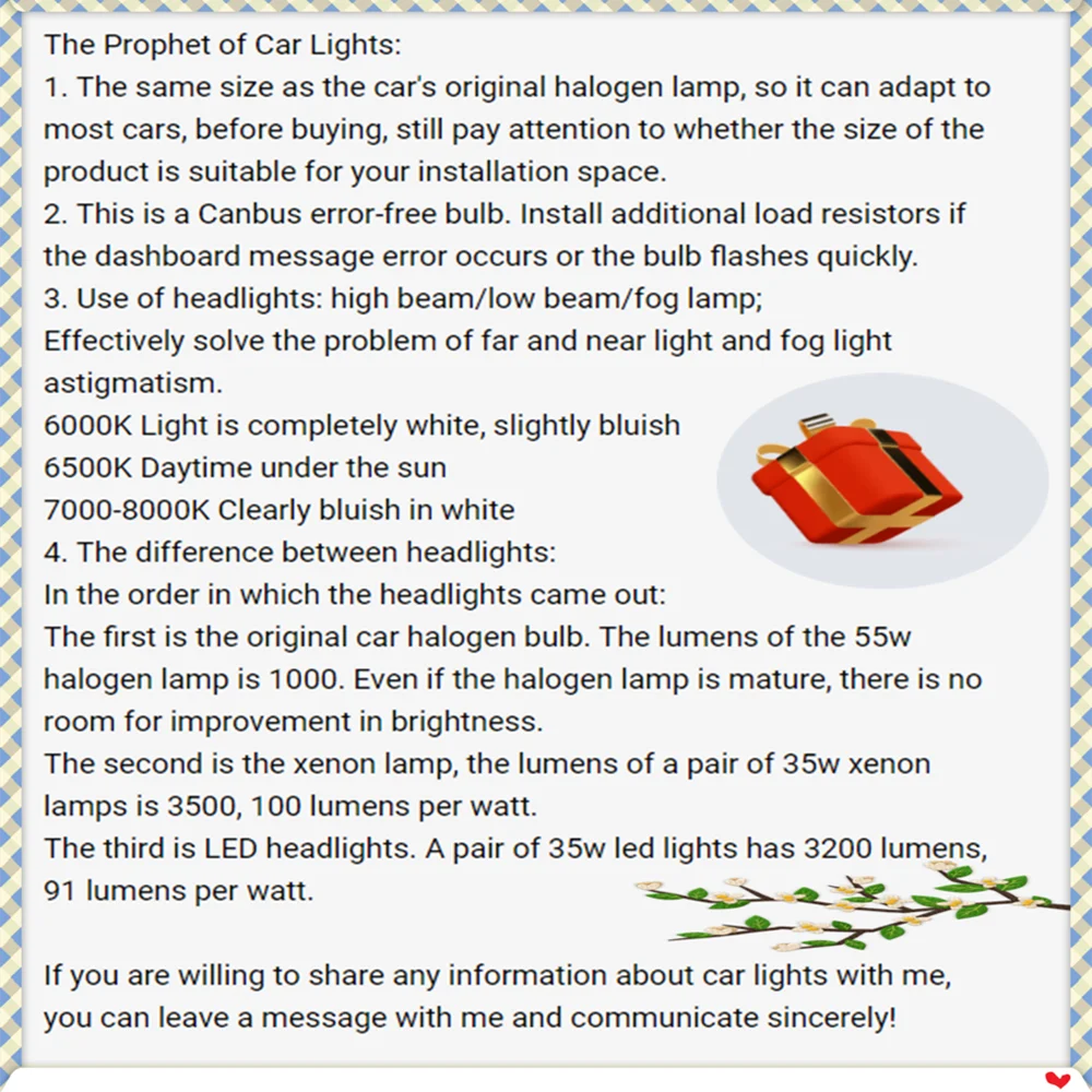 Информация о продукте: Название продукта: светодиодный фонарь Внешний/внутренний: внешний свет Тип: прожектор Рабочая Напряжение: 12V-24V Светильник с цветовой температурой: белый 6000K-6500K Мощность: около 110 Вт/пара Люмен: 12000 лм Модель автомобиля: подходит для большинства автомобилей Бренд: подходит для большинства автомобилей Уровень защиты: IP67 Материал: алюминий Преимущества продукта: 1. Высококачественная продукция, Сфокусированная технология луча 2. Высокая светоотдача, супер яркий 12000LM 3. Подключи и работай, неразрушающая установка 4. Мощный Canbus Меры предосторожности при установке: 1. Убедитесь, что автомобиль имеет достаточно времени, чтобы остыть должным образом, прежде чем начать процесс установки. 2. Припаркуйте автомобиль на парковке или убедитесь, что он в безопасности 3. Не забудьте выключить выключатель зажигания и снять ключ. 4. Будьте осторожны, чтобы избежать ожогов, особенно при включении или выключении освещения транспортного средства. 5. При регулировке лампы убедитесь, что конец лампы не касался внутренней крышки фары 6. Будьте осторожны, чтобы не раздавить и не разрезать лампу. Также убедитесь, что не прикасайтесь к лампе пальцами, так как это вызовет рассыпание. 7. Тщательно проверьте соединения контактов, портов и проводов, потому что неправильные соединения могут вызвать проблемы с освещением. Упаковка включает: 2 шт. светодиодный фонарь