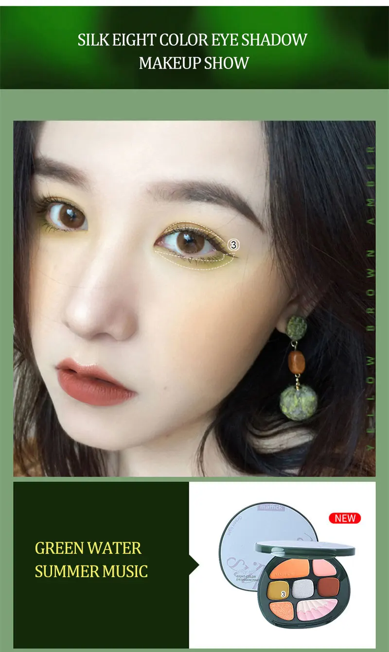 Шелковые восьмицветные тени для век, пудра, палитра янтарных теней для век, шелковая портативная матовая природная палитра, женская косметика TSLM1