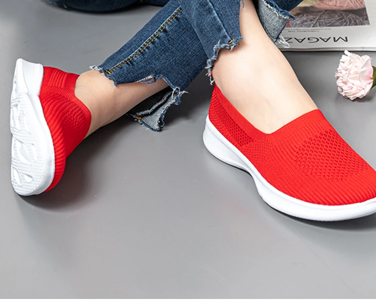 2021 Летняя женская обувь с вязаным женская спортивная обувь без шн...