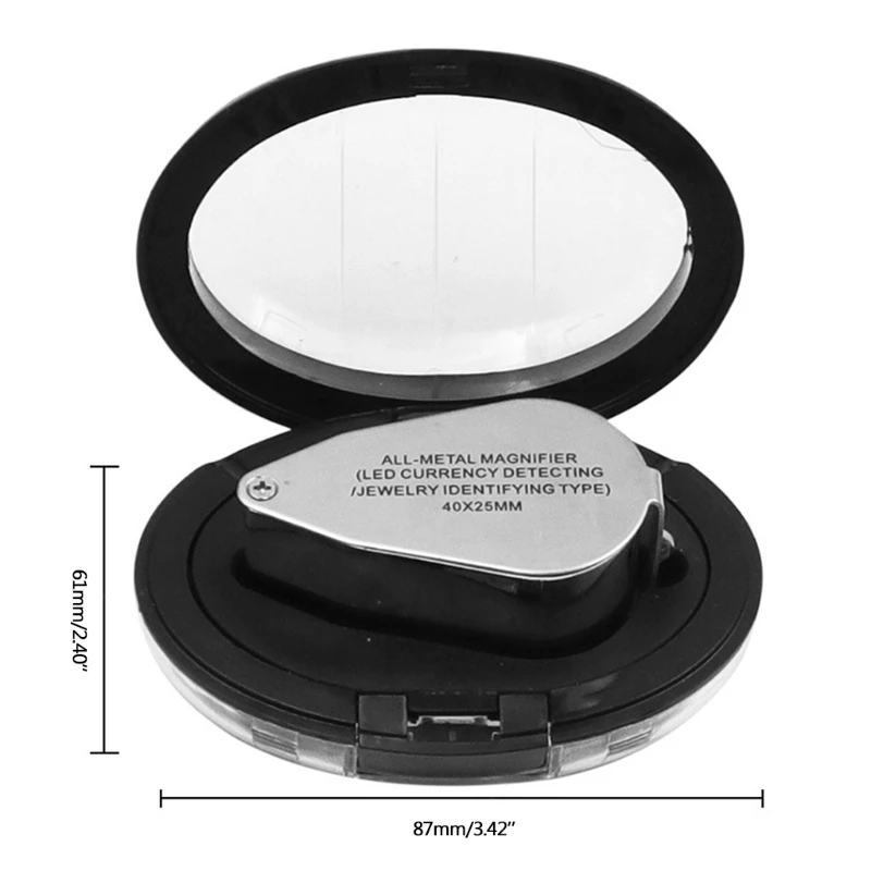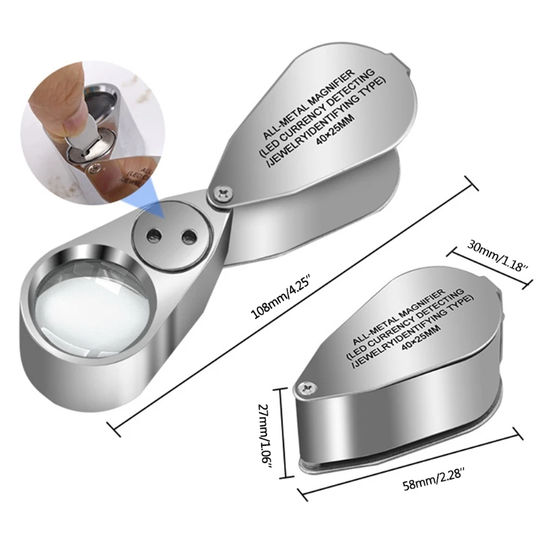 40X полностью Металлическая Лупа с подсветкой для ювелирных изделий, лупа со складным дизайном, карманное увеличительное стекло светодиодный дом и УФ-защитой