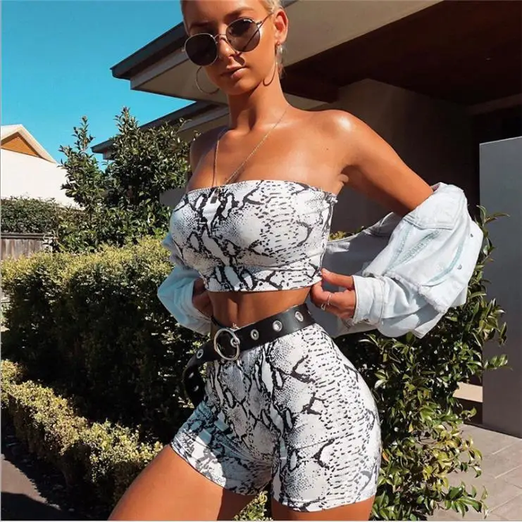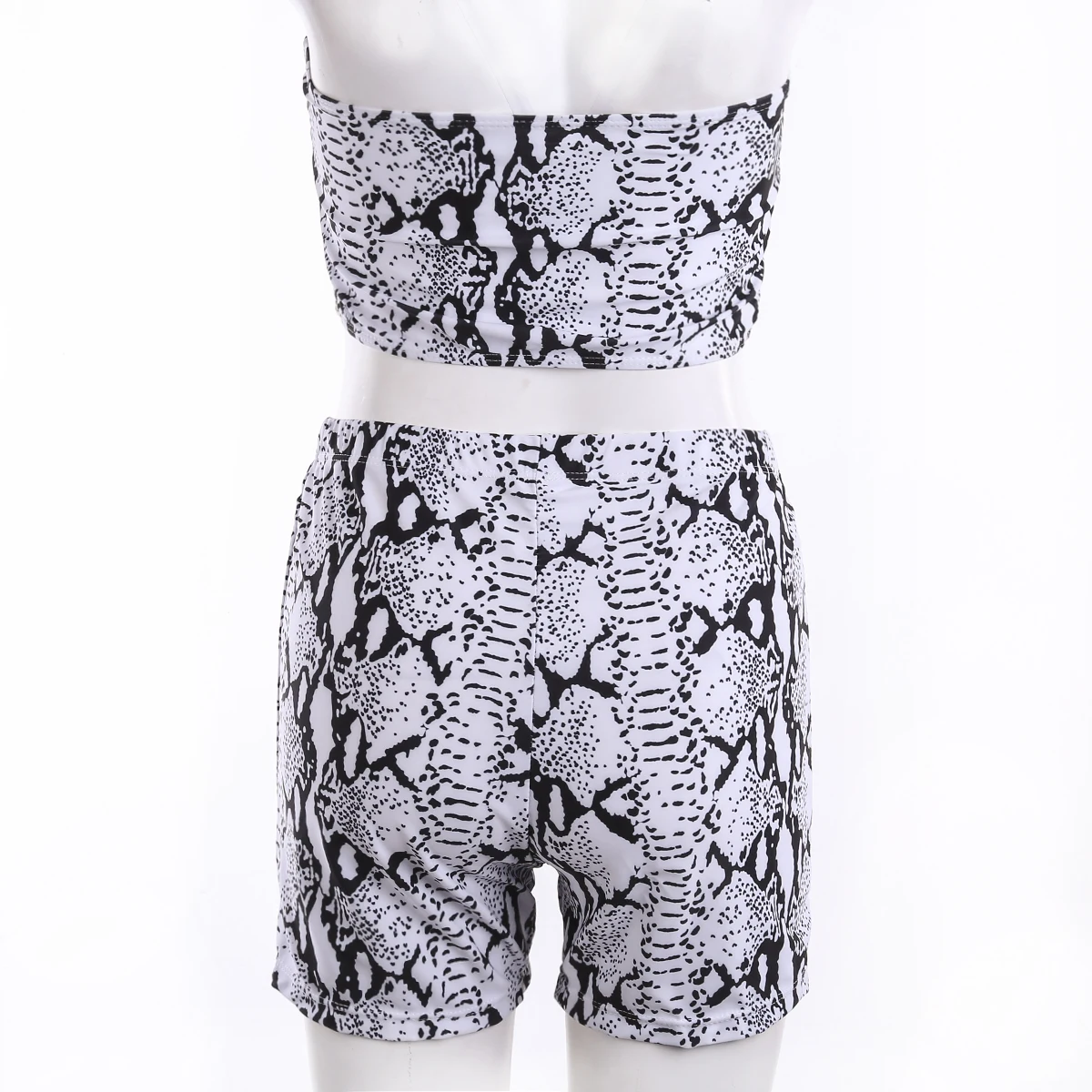 Сексуальный женский комплект бикини со змеиным узором без бретелек с подкладкой топ и шорты с высокой талией купальник Летний купальный костюм Пляжная одежда