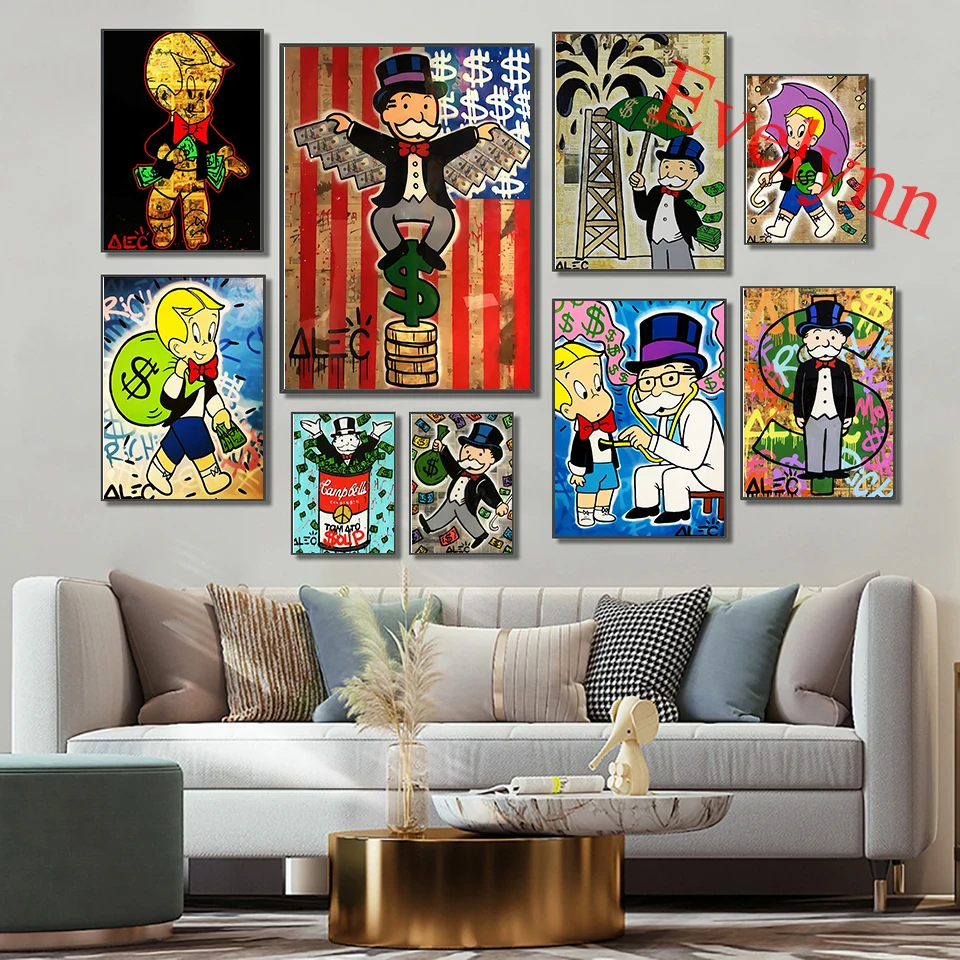 Monopoly граффити постер Долларовое искусство, уличный художественный постер, винтажный постер мистер Монополия человека, домашний декор, холст, настенные художественные принты, подарок