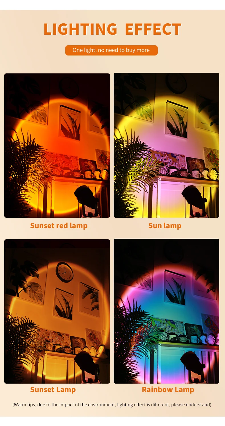 Проекционная лампа с Usb-разъемом, радуга, закат, светодиодный Атмо...