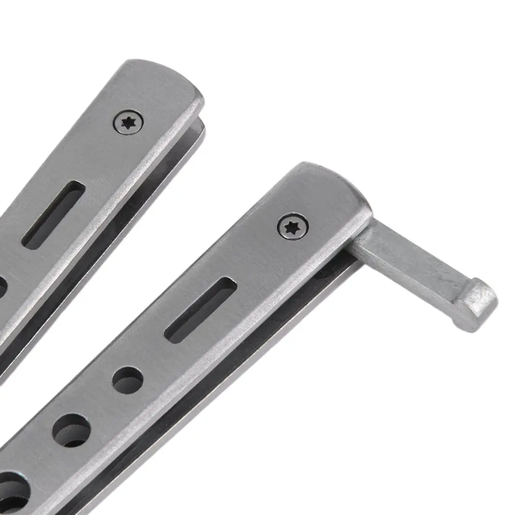 Особенности:Этот товар предназначен только для практического использования.Лезвие имеет отверстия, поэтому его нельзя затачивать.Это идеальный вариант, если вы любитель ножей-бабочек.Вы можете практиковаться без вреда для здоровья.Подходит для различных случаев.Описание: