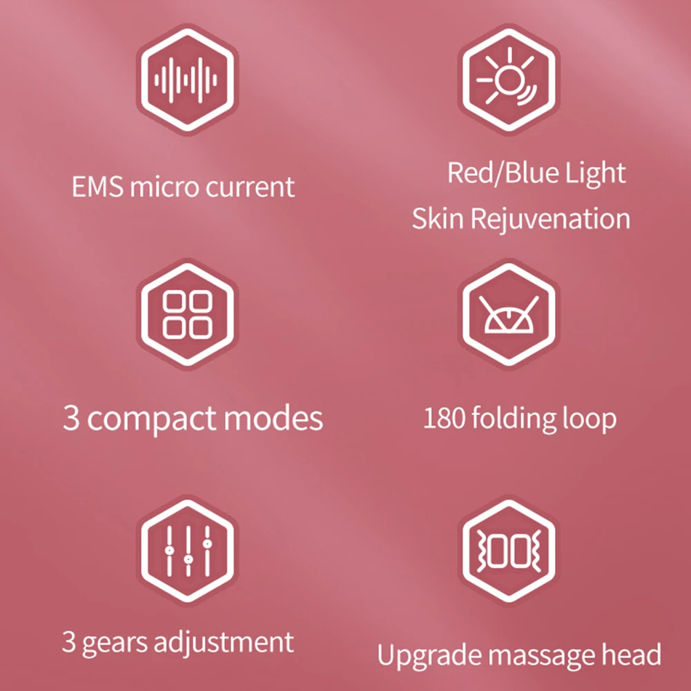 * 1. Красный и синий светильник с микро-током, способствует циркуляции крови, затягивает и делает вашу кожу упругой.