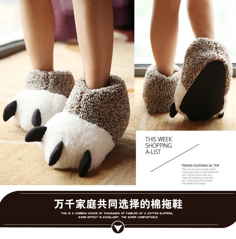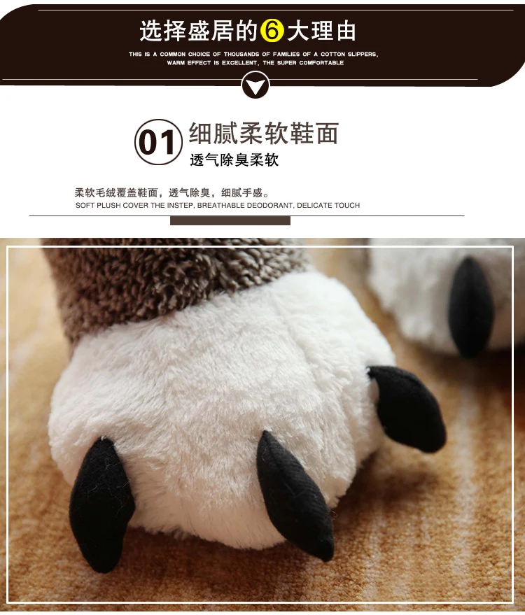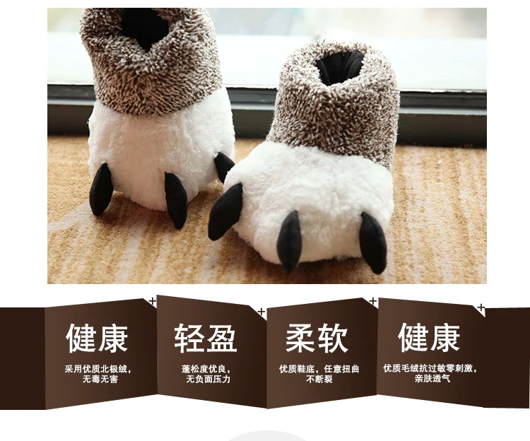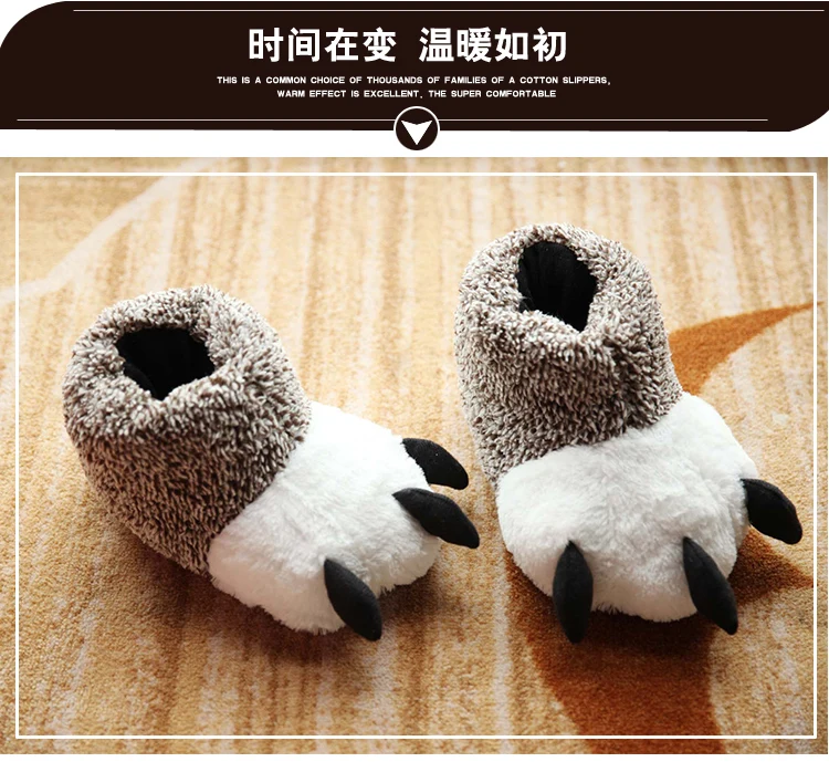 Тапочки с симпатичными мультяшными медвежьими когтями, теплые, пушистые тапочки со вставками в виде монстров для мужчин и женщин, осень и зима, 2021