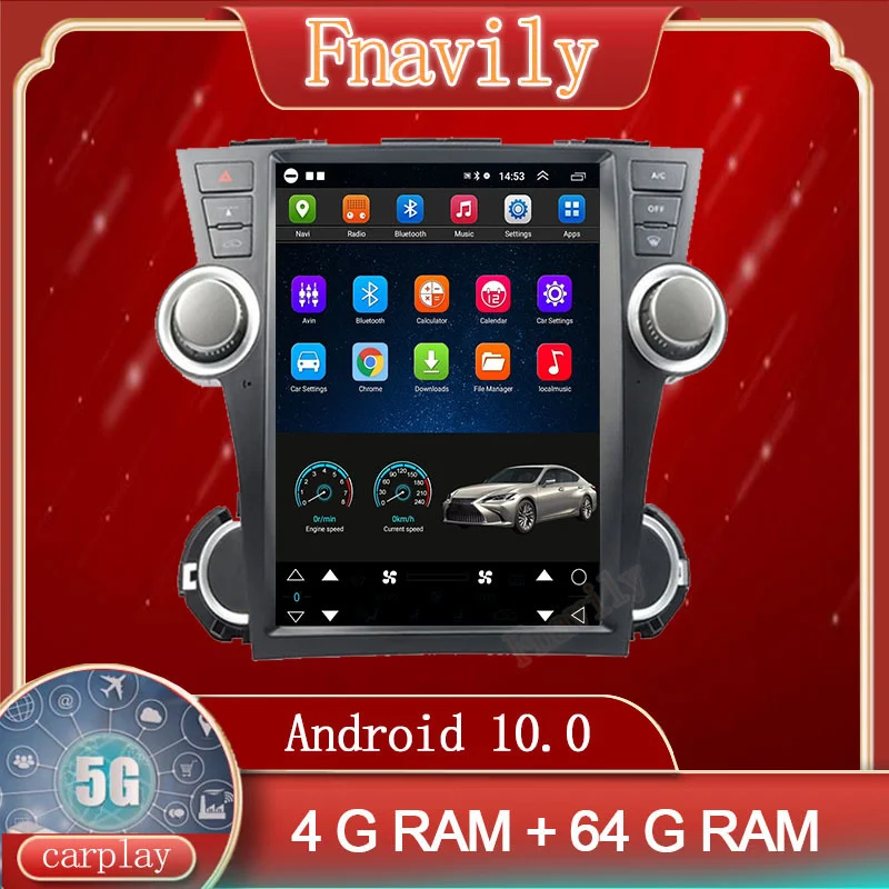 Автомобильный радиоприемник Fnavily Android 10 для Toyota Highlander, Автомобильная Мультимедийная система, плеер, навигация, вертикальный экран, Тесла стиль 12,1 "PX6