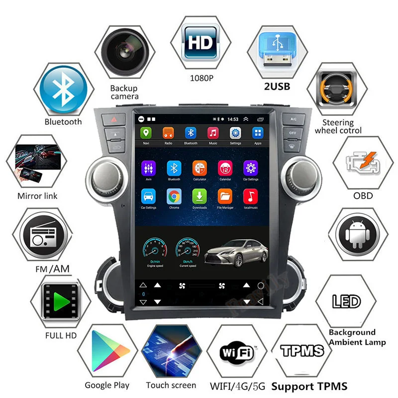 2.HD IPS G + G дисплей 4K/1080P1280*800 высокая плотность пикселей обеспечивает удивительно яркие видео и визуальные эффекты.Автомобильное радио для Toyota Highlander
