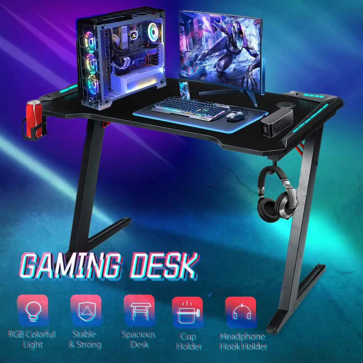 Компьютерный стол 2021 39in с красочной подсветкой, Эргономичный игровой стол В гоночном стиле, стол для дома, офиса, ПК, ноутбука с держателем для чашки