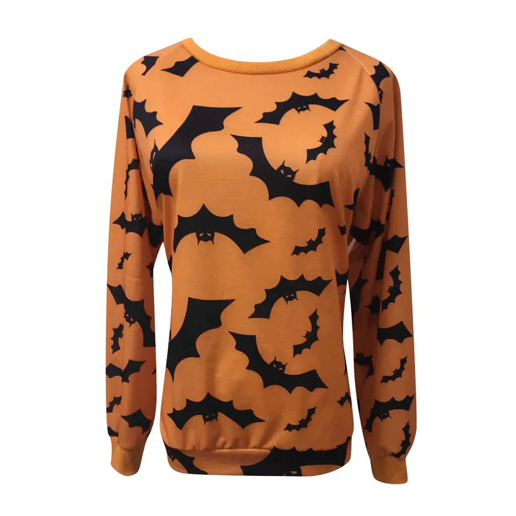 Женский свитшот с принтом летучей мыши и тыквы на Хэллоуин, Повседн...