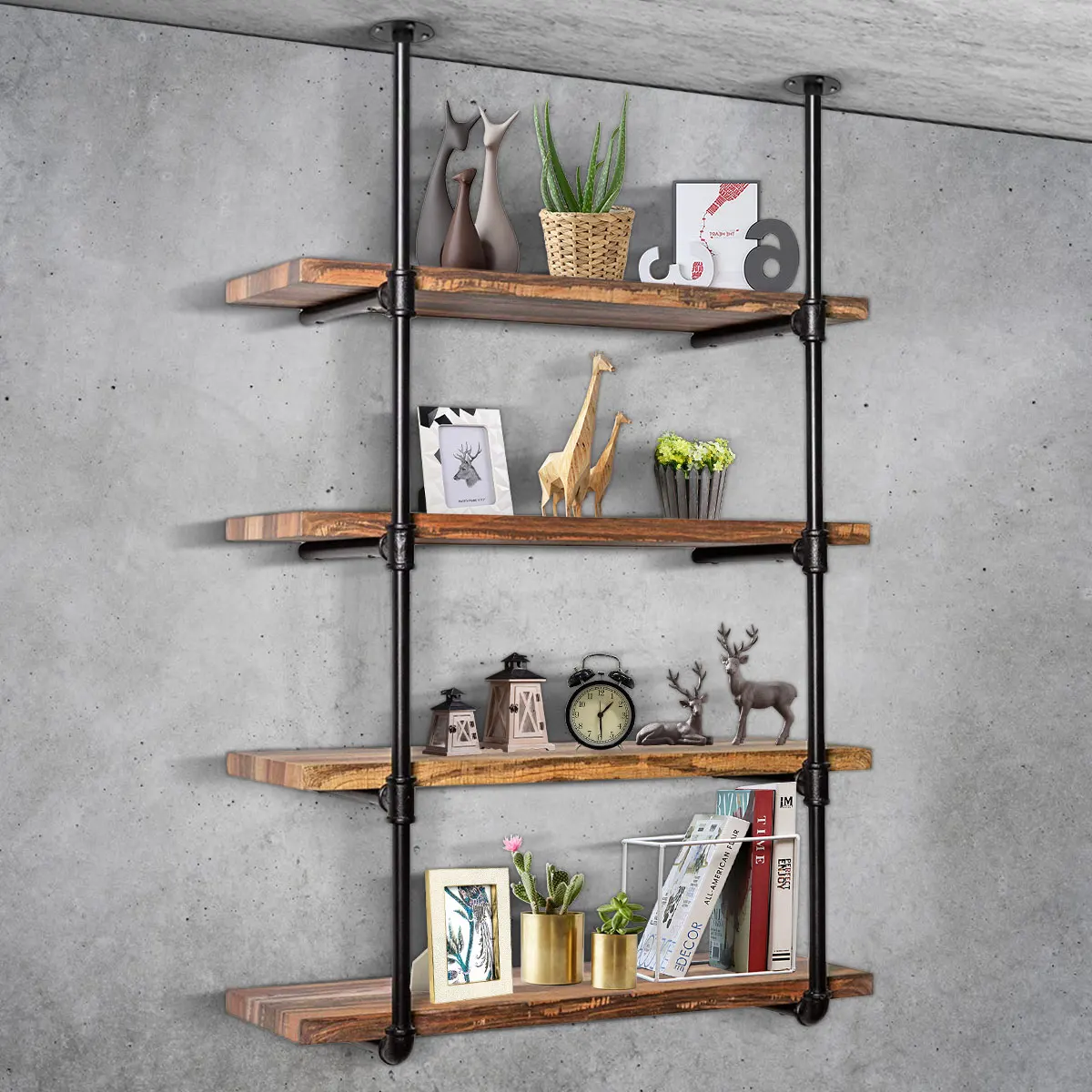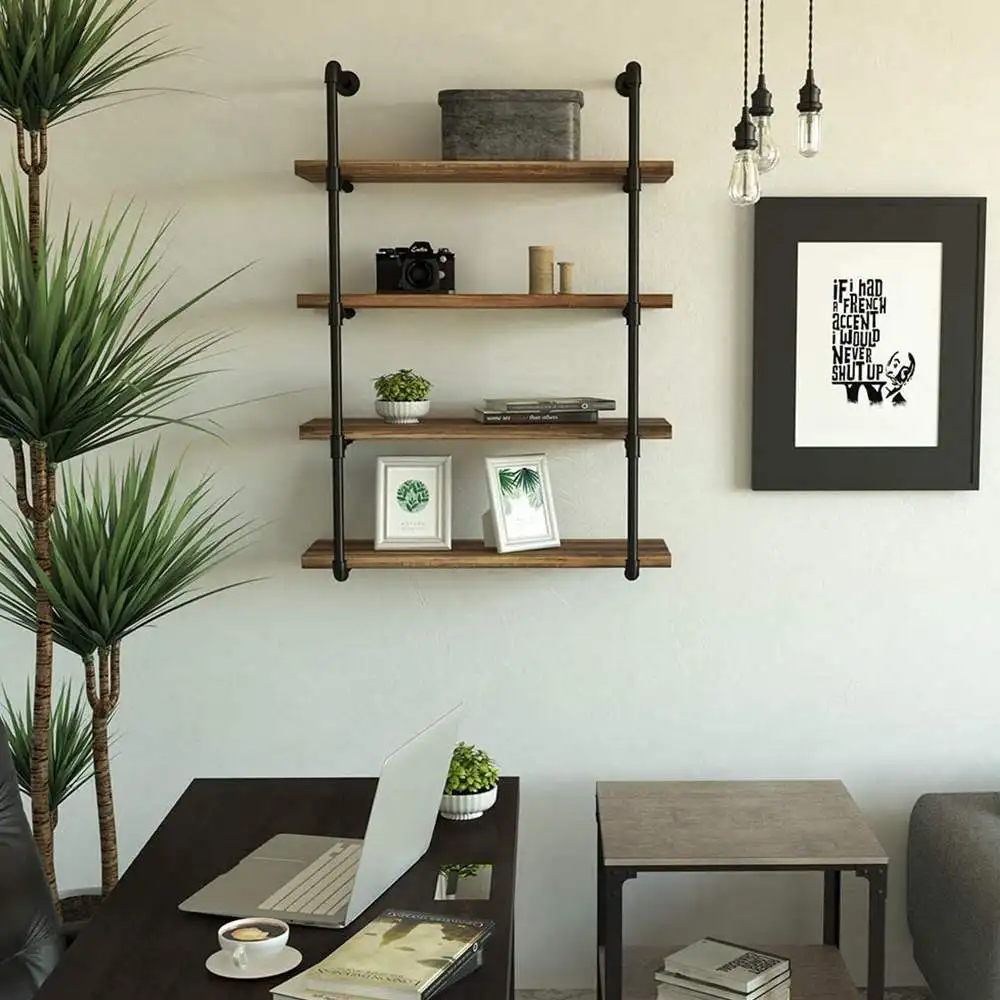 Универсальная настенная полка:Установите его с потолка или земли и привнесите современное промышленное притяжение к любой обстановке, такой как гостиная, спальня, кухня, бар или кафе