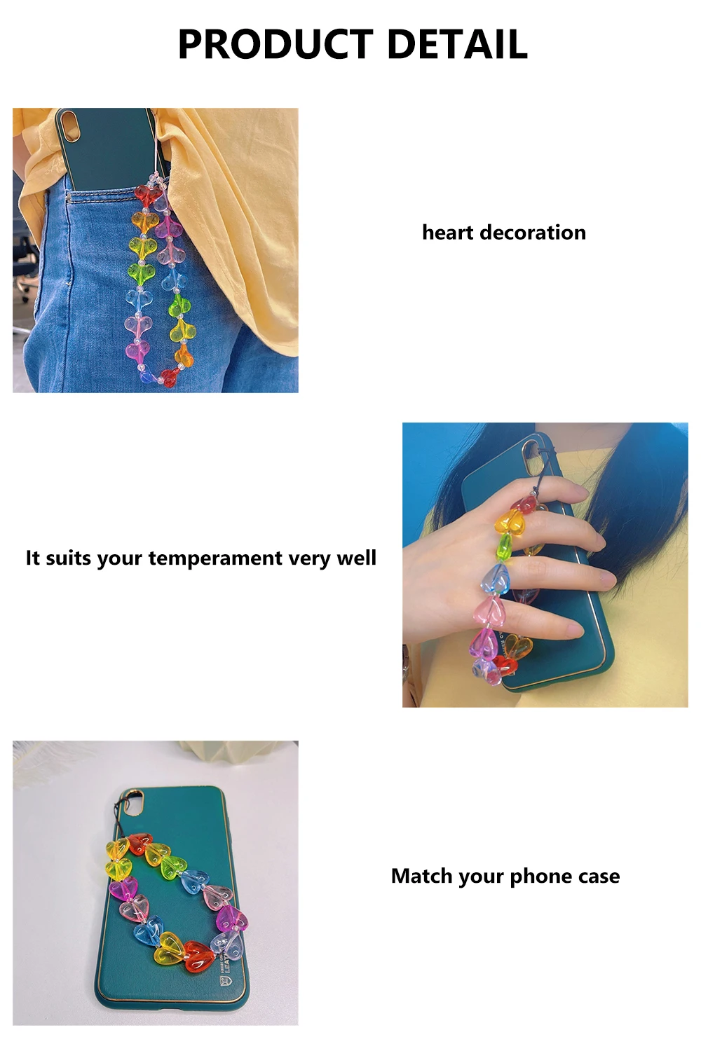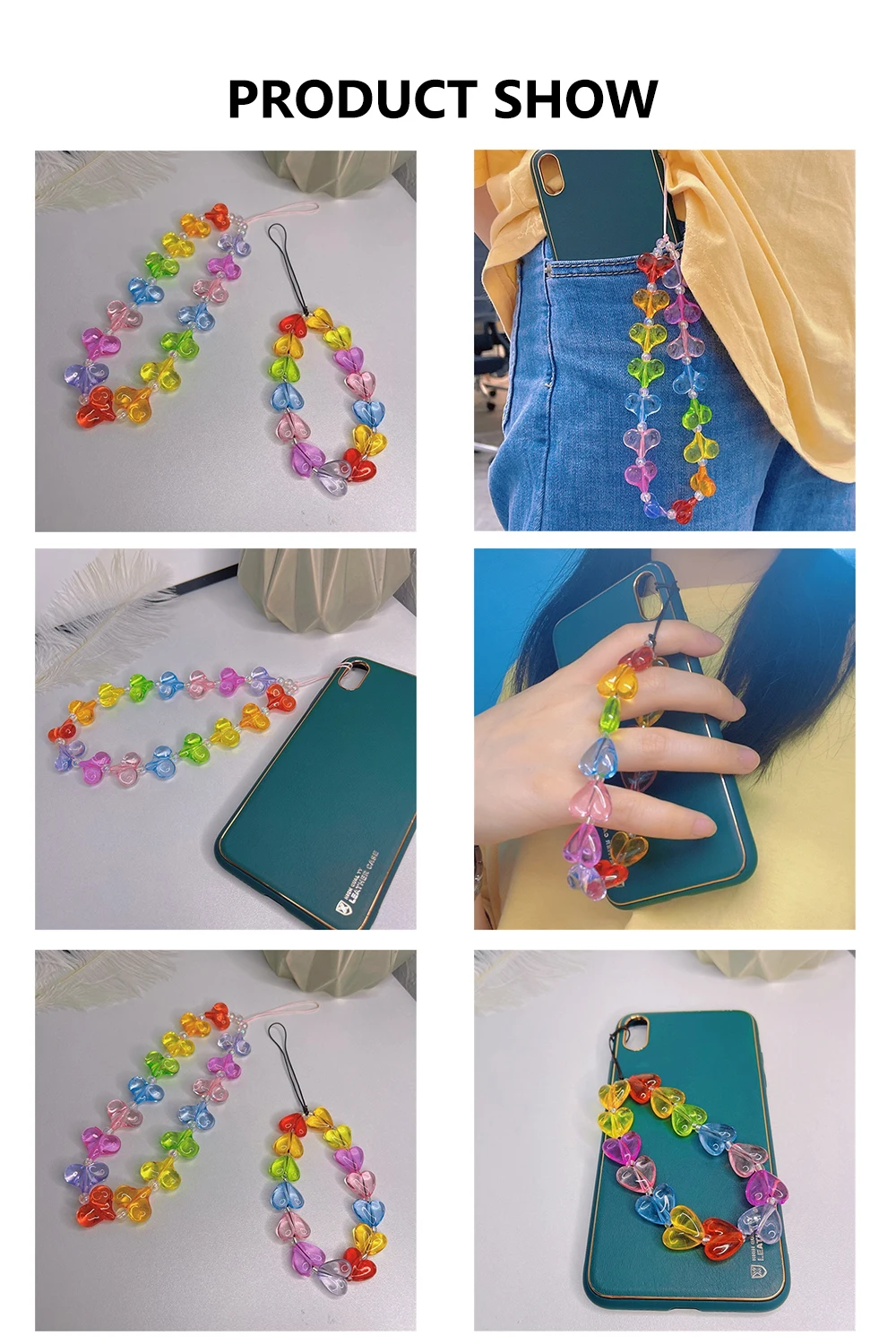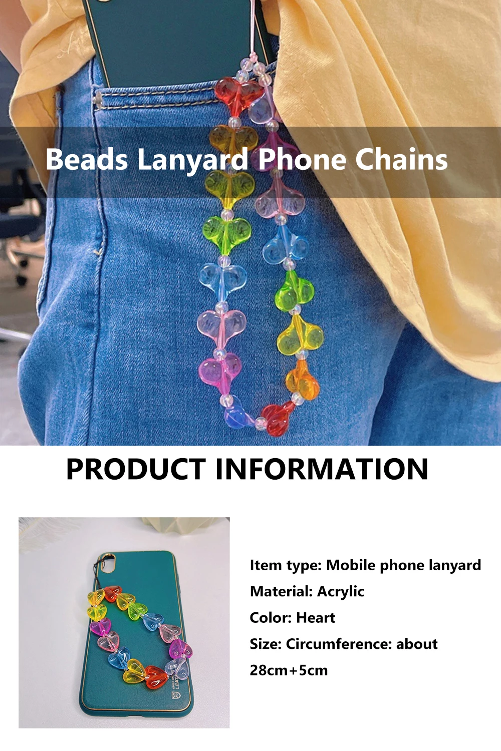 Красочные акриловые сердца, прозрачные бусины-подвески для телефона...