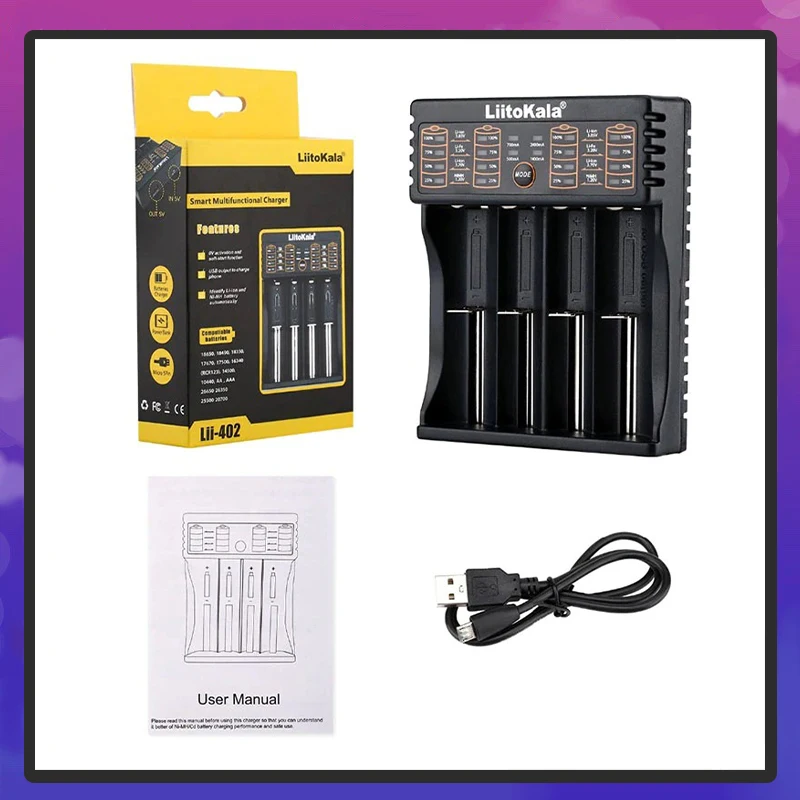 Зарядные устройства для батареек LiitoKala Lii-402, Слота 18650 21700 26650 20700 18350 26700 AAA AA