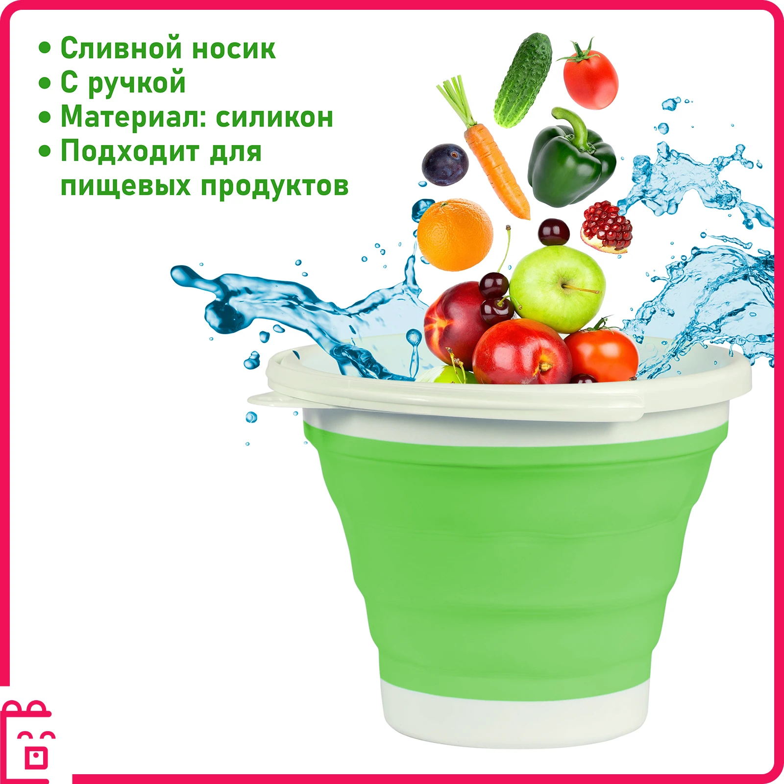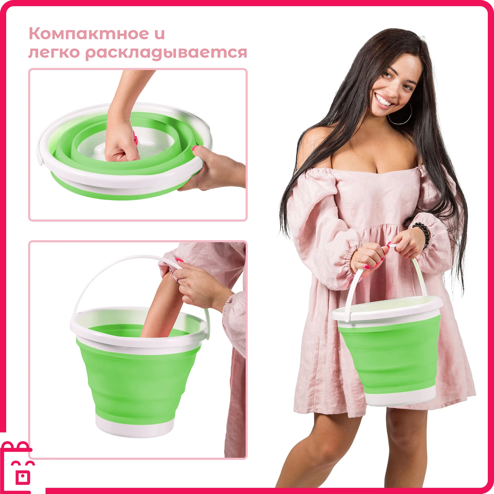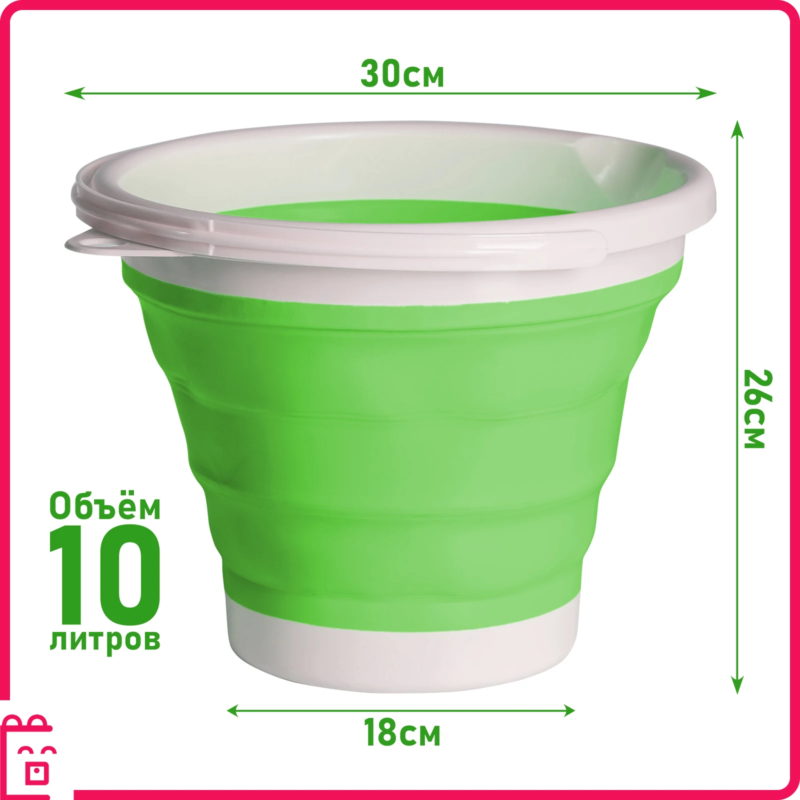 Ведро силиконовое складное 10л зеленое, Складное ведро, Силиконовое ведро, Складное ведро для воды ванной кухни рыбалки