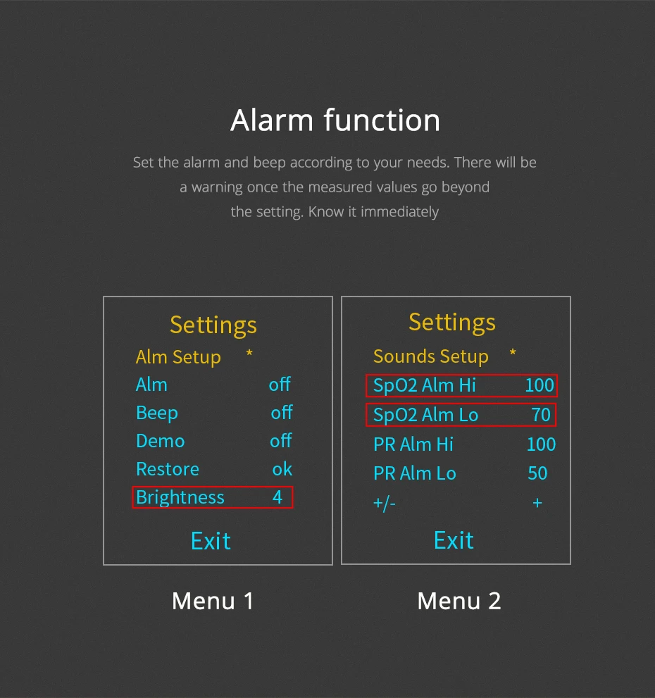 В режиме включения нажмите кнопку в течение более 2 секунд, чтобы перейти в режим меню. Нажмите, чтобы выбрать функцию, затем нажмите 2 секунды, чтобы изменить состояние ВКЛ/ВЫКЛ. Вы можете настроить звуковой сигнал, звуковой сигнал и яркость экрана в соответствии с вашими потребностями.