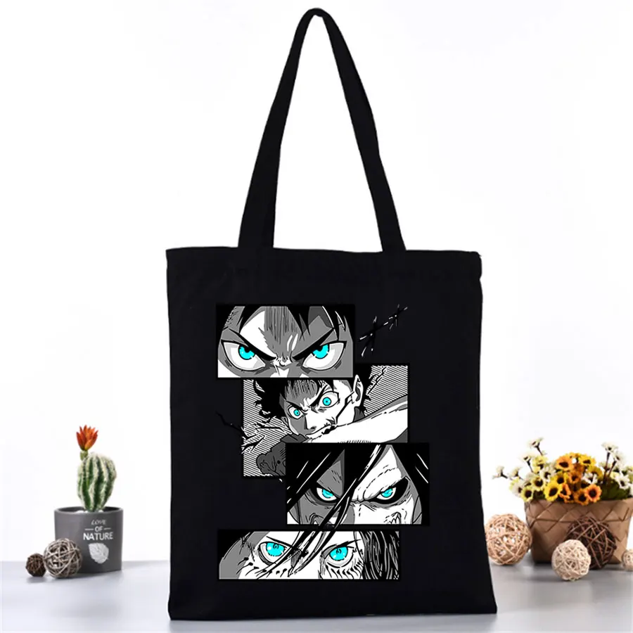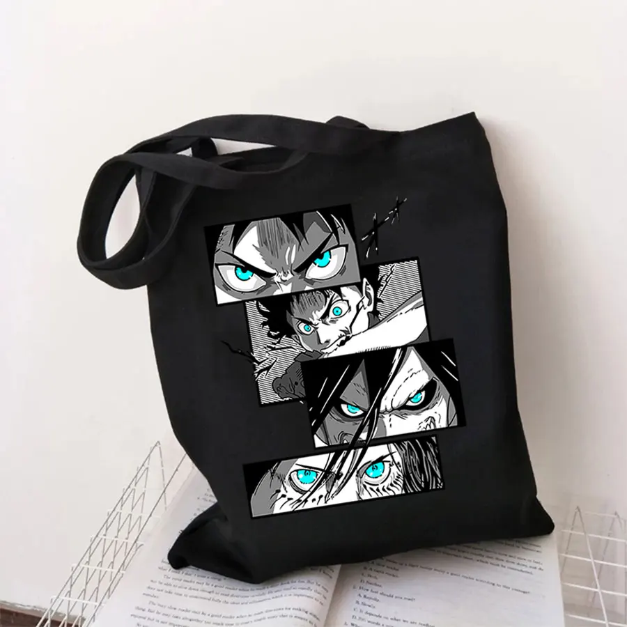 Черная сумка для покупок из хлопка с аниме атака на Титанов, женски...