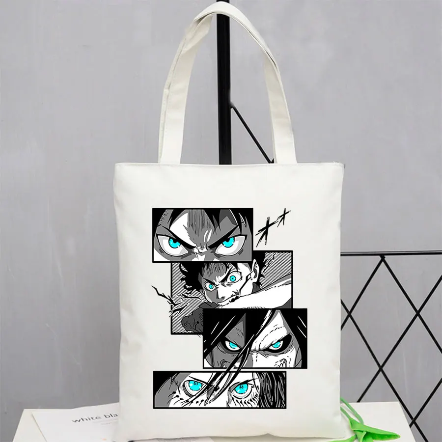 Холщовая Сумка-тоут для женщин, шоппер с аниме атака на Титанов, Экологически чистая многоразовая Сумочка для покупок на ремне