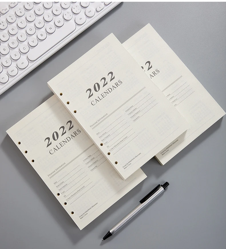 Журнал 2022, ежедневник, планнер, блокнот A5, вставки, стержни с 6 отверстиями, свободное спиральное кольцо, планер, Внутренний сердечник, бумага 80 г