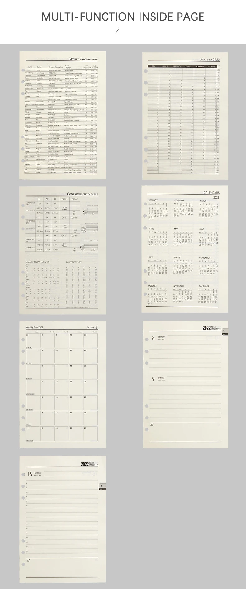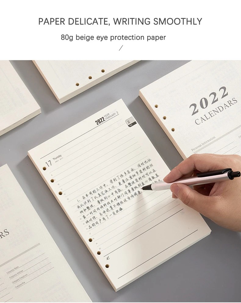 2022 журнал повестки дня планировщик ноутбук A5 вставка заправки 6 отверстий свободный лист спиральное Кольцо Связующий дневник планировщик внутренний ядро 80 г бумага