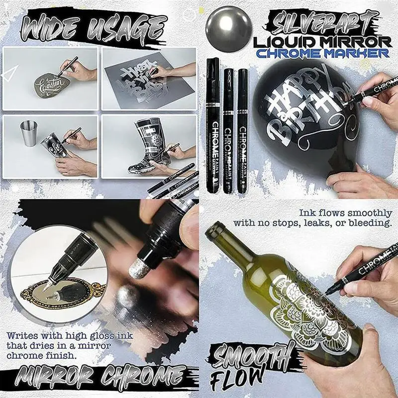 Серебристые зеркальные жидкие хромированные маркеры для творчества, 3 шт., зеркальная ручка, светоотражающая ручка для рисования, ручка-Хайлайтер для творчества, Подарочная маркировка для карт