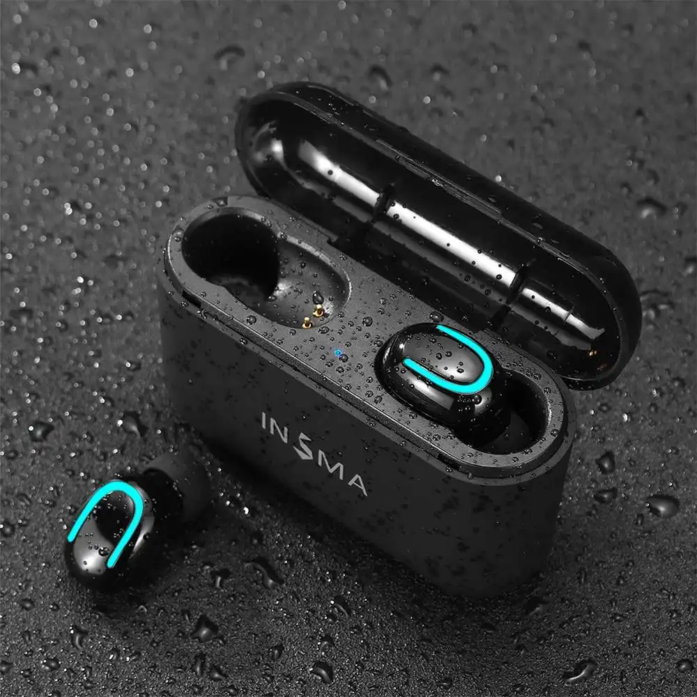 INSMA VFM-1 TWS Bluetooth-наушники; Беспроводные наушники с зарядным боксом на 3500 мА ч; 9D стерео; Спортивные водонепроницаемые наушники; Гарнитура