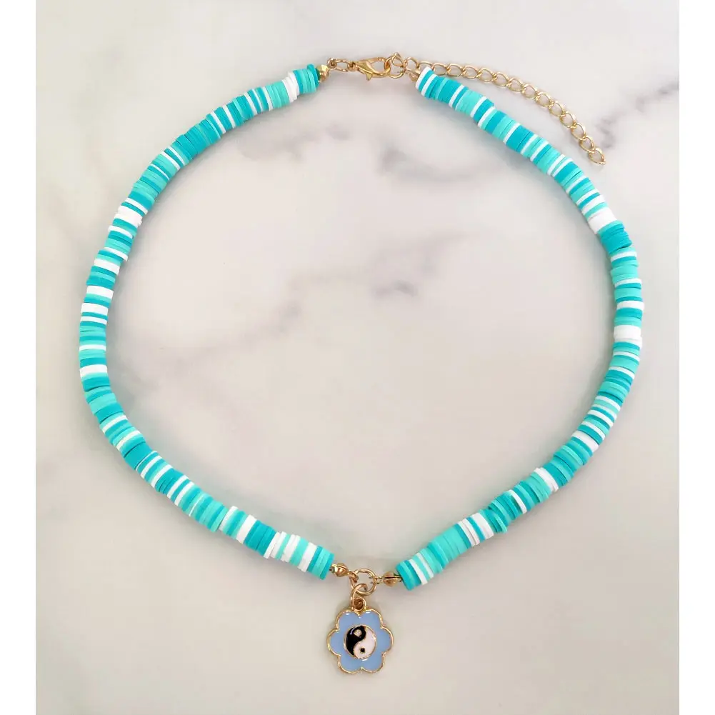 Корейское ожерелье из полимерной глины с бусинами Стразы Подсолнух кулон для Тай Чи жемчужные бусины нитка Асимметричные ожерелья ручной работы ювелирные изделия