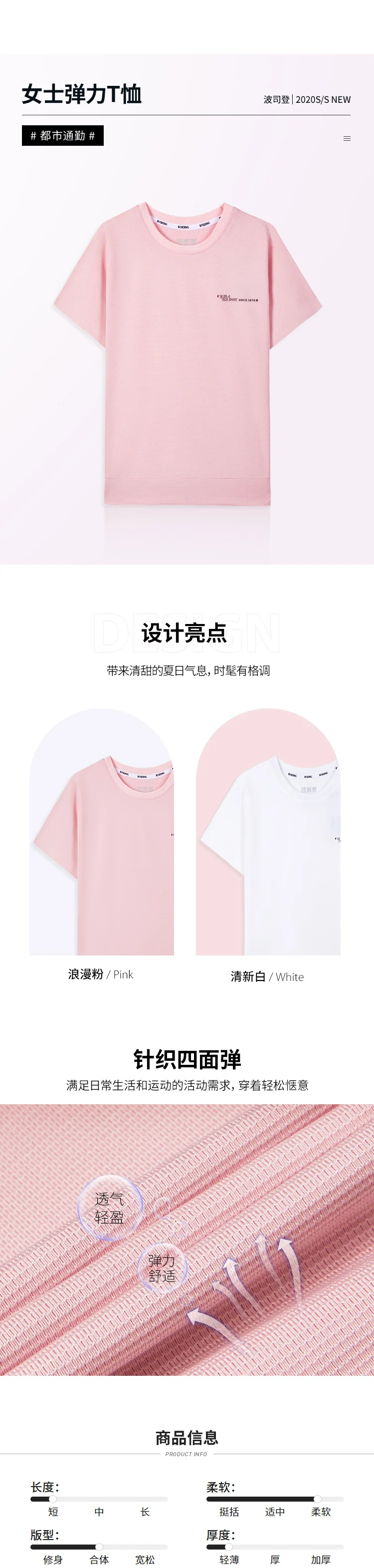 Летние футболки Bosideng, Новая женская модная футболка с коротким рукавом, приятная для кожи бесшовная ткань, трикотажная четырехсторонняя эластичная B00221116