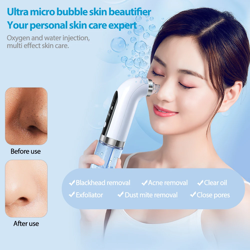 Электрический вакуумный очиститель для лица, устройство для удаления черных точек с маленькими пузырьками, цикл воды, акне, Удаление прыщей