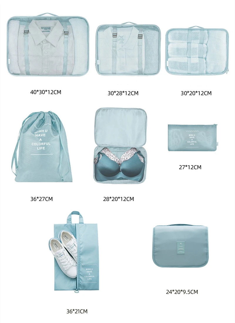 8 шт.компл. вместительные сумки для багажа, для упаковки кубической одежды, нижнего белья, косметики, дорожный органайзер, сумка для туалетных принадлежностей
