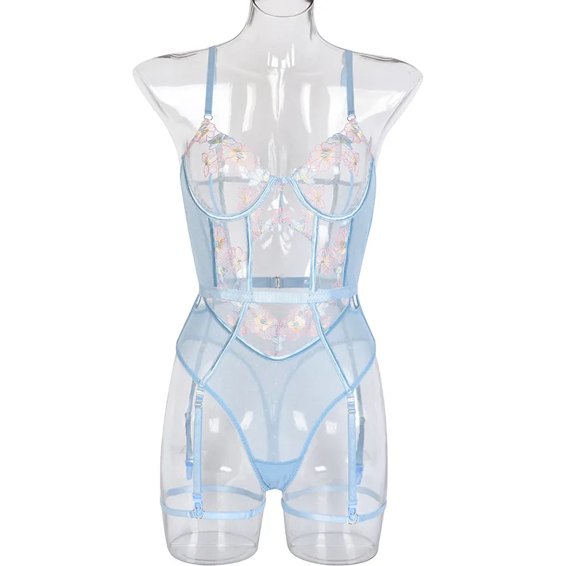 GREDEA женский кружевной вышитый тонкий комбинезон, бюстгальтер на косточках, сексуальное нижнее белье, пояс с подвязками, прозрачное Эротическое нижнее белье