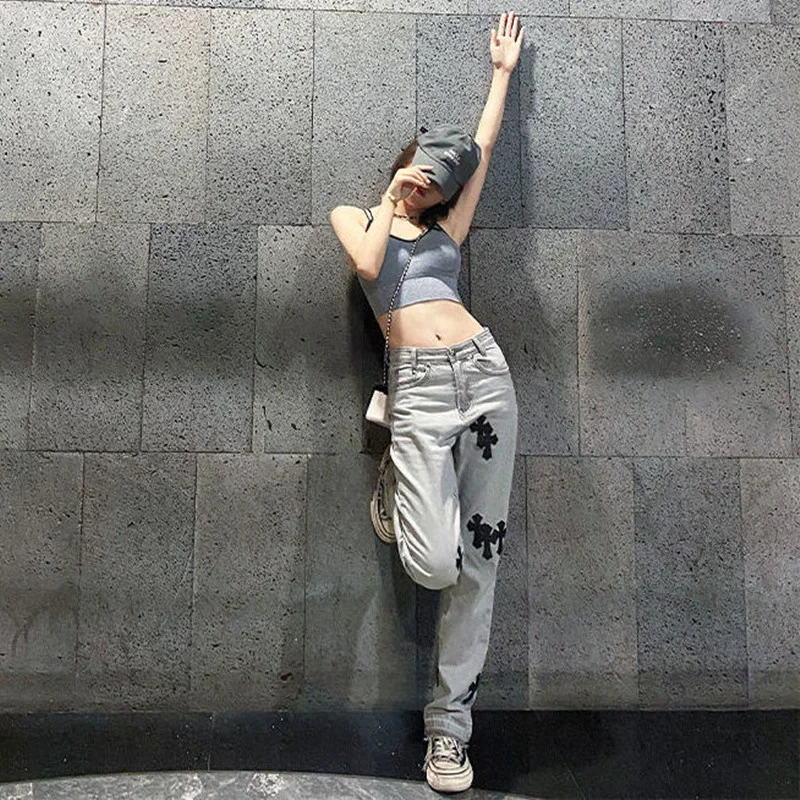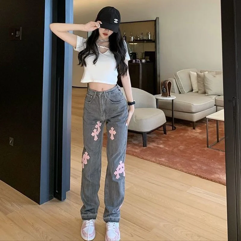 Уличная одежда, модная женская одежда в Корейском стиле, яркие женские прямые мешковатые брюки с завышенной талией Y2k, повседневные джинсовые брюки