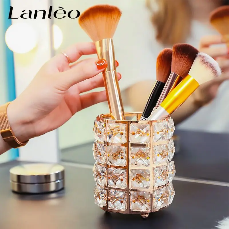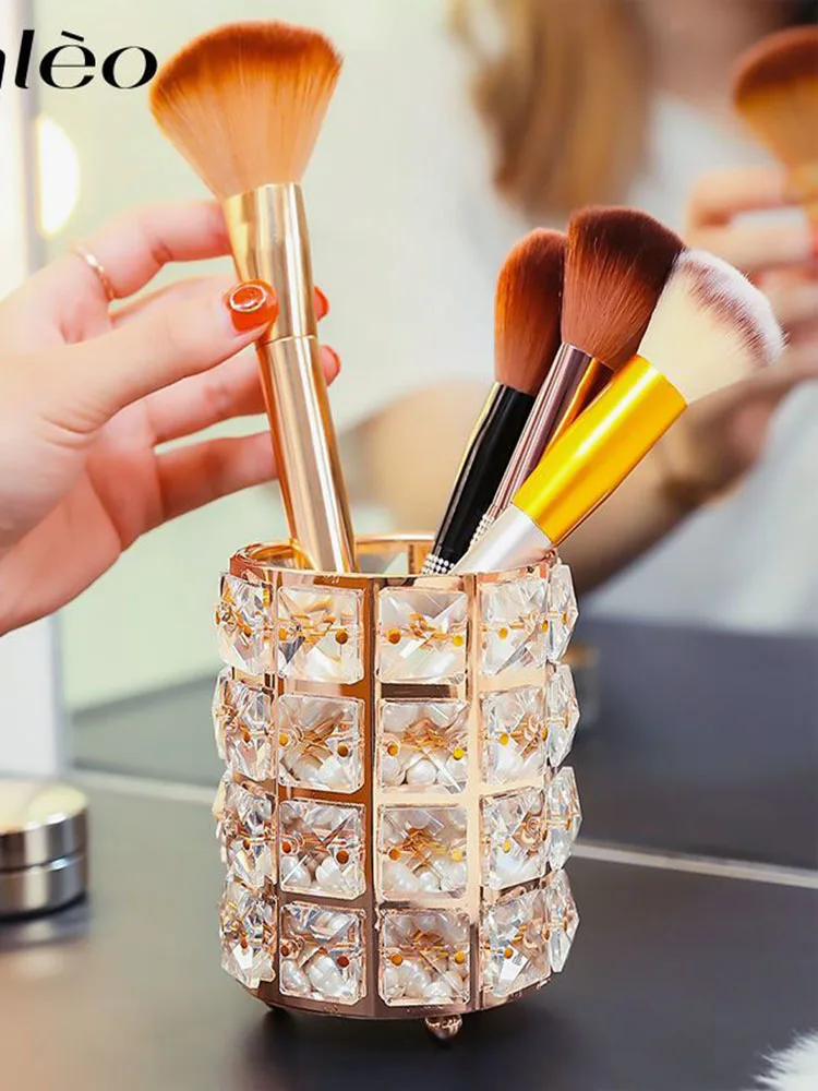 Круглый хрустальный держатель для ручек, держатель для кисточек для макияжа, держатель для косметики, Хрустальный подарок, подставка для туалетного столика