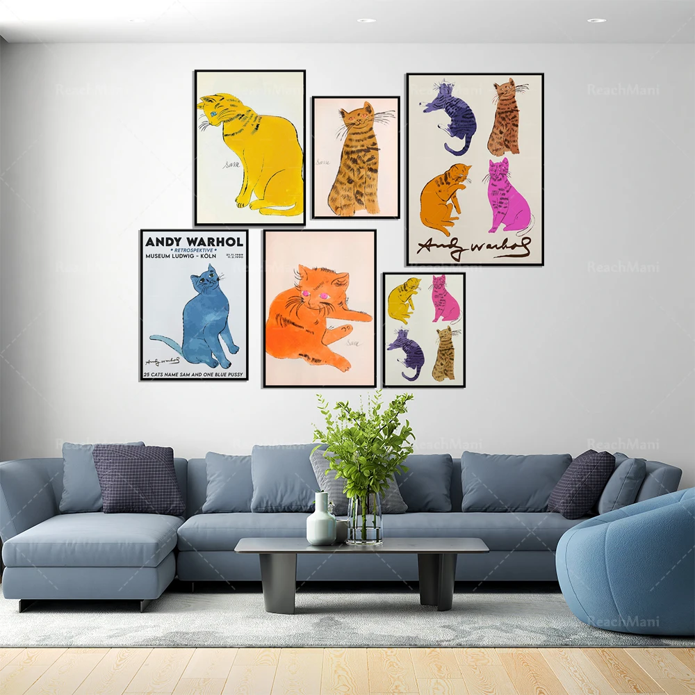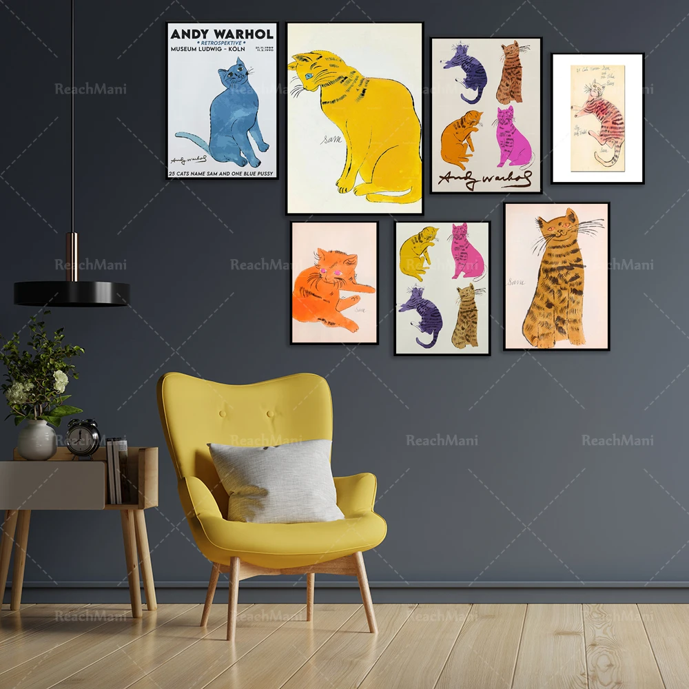 Принты с котами Энди Уорхола, художественный постер с котом Энди Уорхола, винтажные художественные принты с животными, украшение с постерами