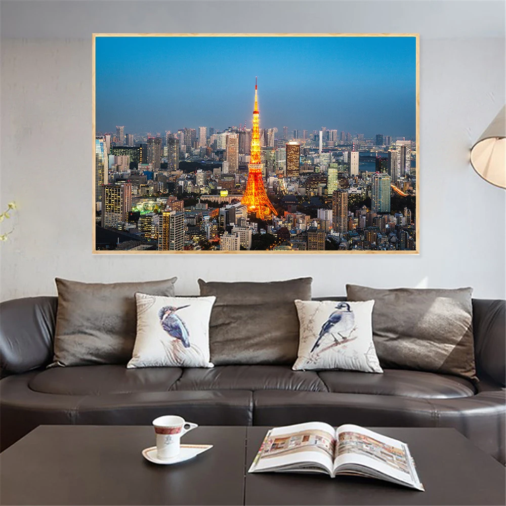Задние плакаты с изображением моста Городской пейзаж для ночной съемки с изображением Нью-Йорка и Токио для декора гостиной