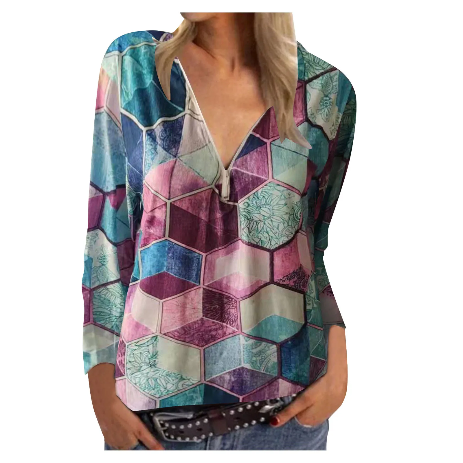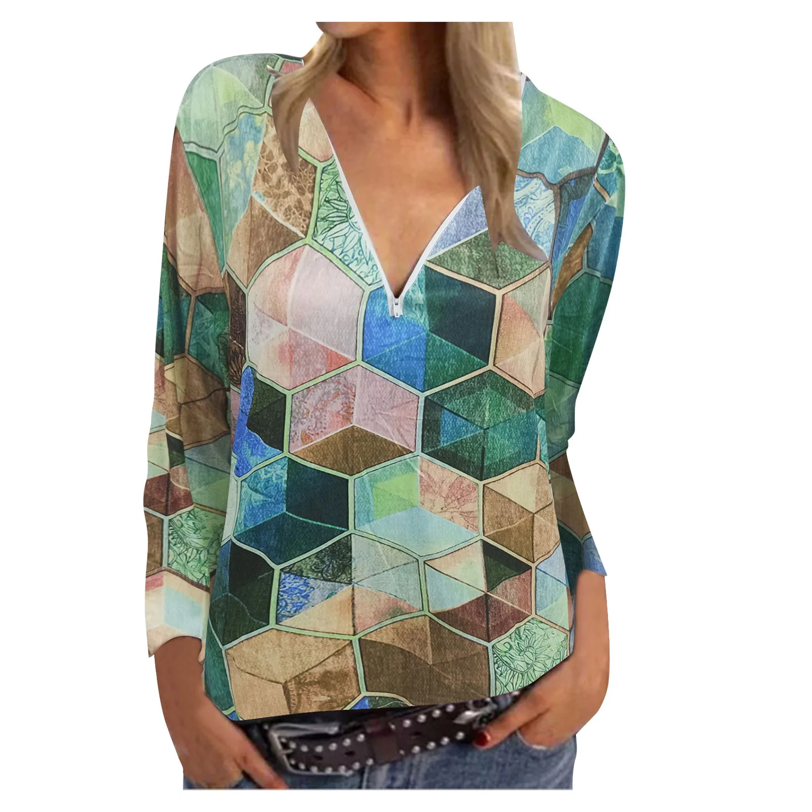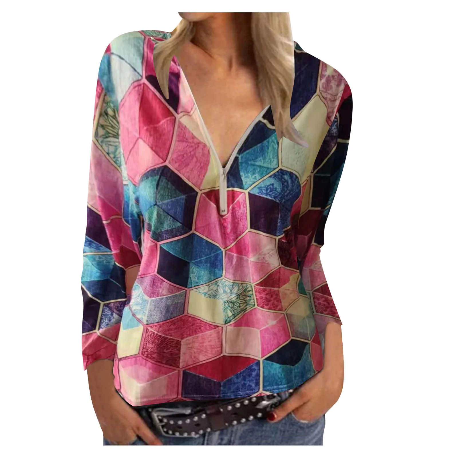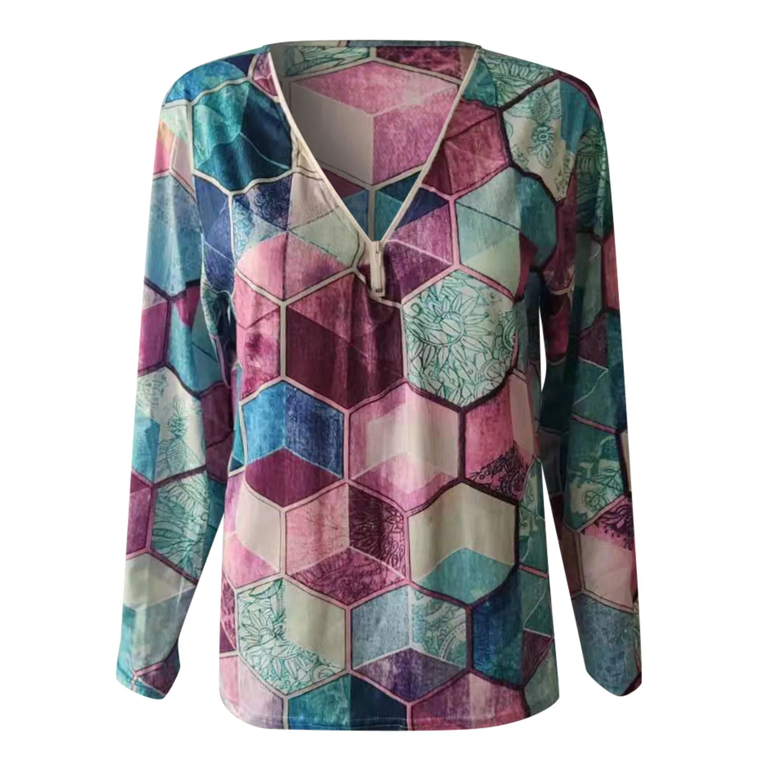 Женская Футболка с длинным рукавом, V-образным вырезом и принтом
